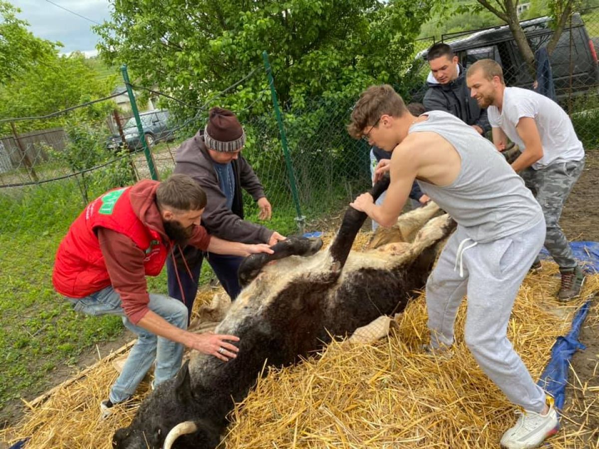 Au încărcat vaca în mașina clinicii. Pentru că nu exista un grajd disponibil, până în seară medicii au reușit să încropească și un adăpost. Pe un pat gros de paie, văcuța a primit tratament perfuzabil și injectabil. O mobilizare exemplară, pentru ca un suflet chinuit să simtă și bunătatea umană, după atâta suferință cruntă.