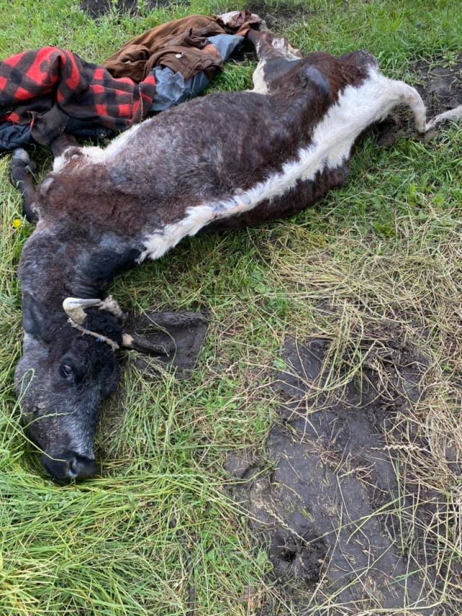 Medicii veterinari de la TrioVet, care au primit imaginile, au crezut inițial că este vorba despre un animal mort, astfel că nu au acționat în prima clipă. Șocul avea să vină odată cu informația că văcuța este vie.
