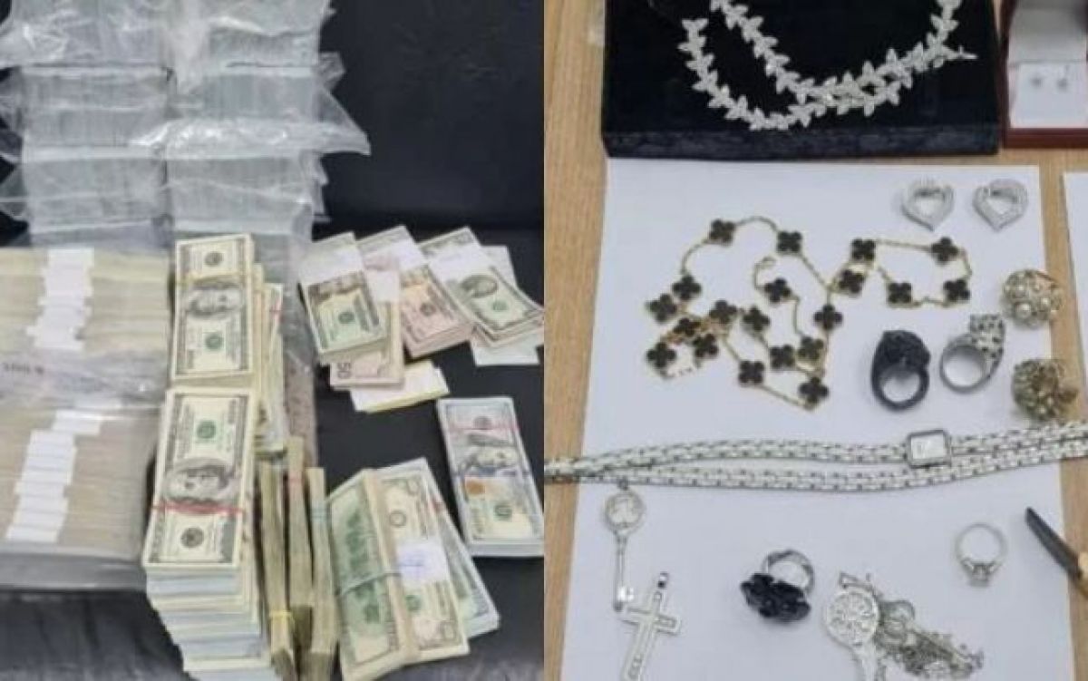 Poliţia de Frontieră a descoperit în bagajele din autoturism banii, plus nouă ceasuri de diferite mărci, bijuterii şi 24 genţi inscripţionate cu denumiri ale unor firme cunoscute.