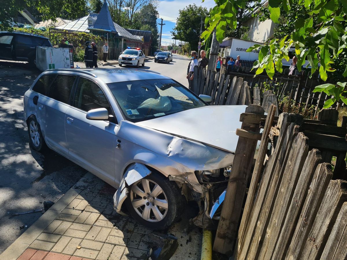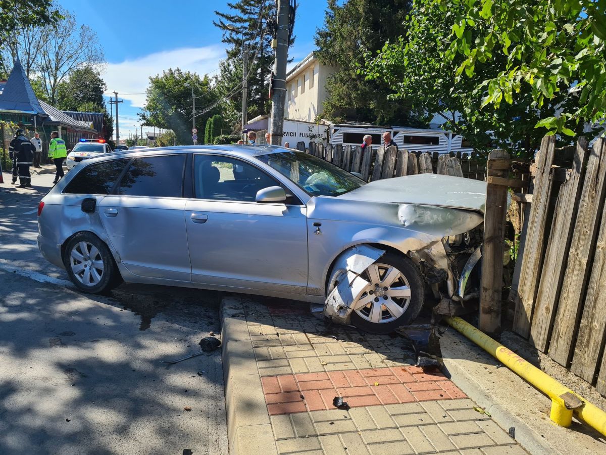 De pe Aleea Trandafirilor a pătruns pe drumul cu prioritate autoturismul Audi care ar fi trebuit să oprească la semnul Stop.