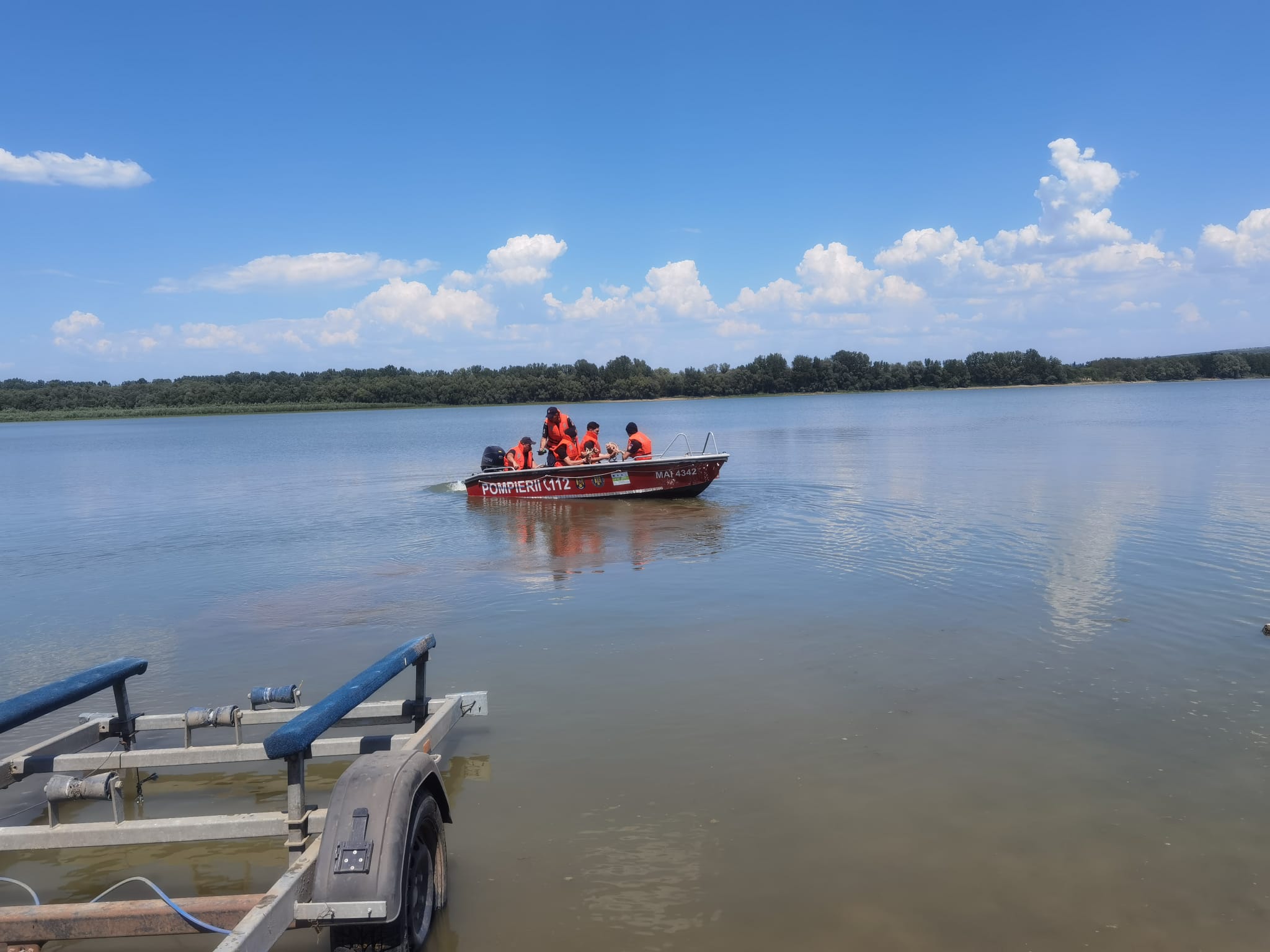 Până la sosirea acestora la caz, pompierii efectuează căutări cu bărcile. Misiunea este îngreunată de curenții puternici.