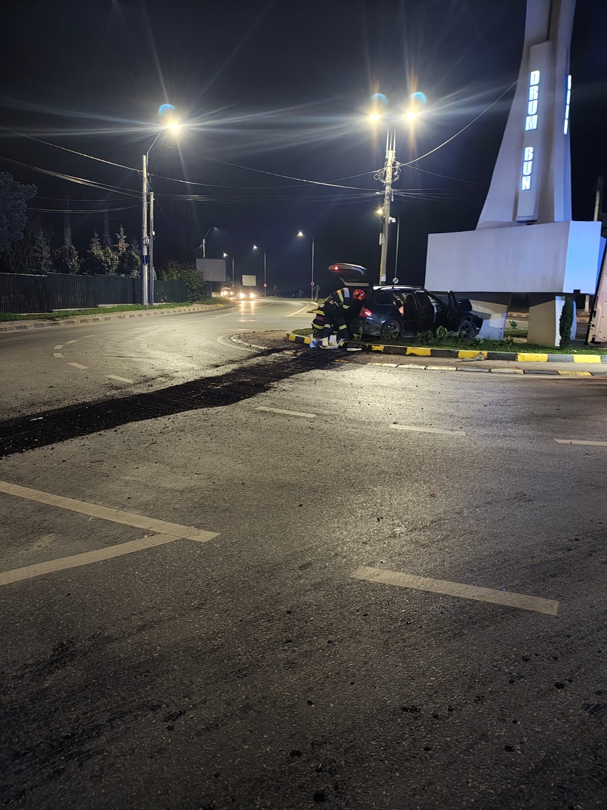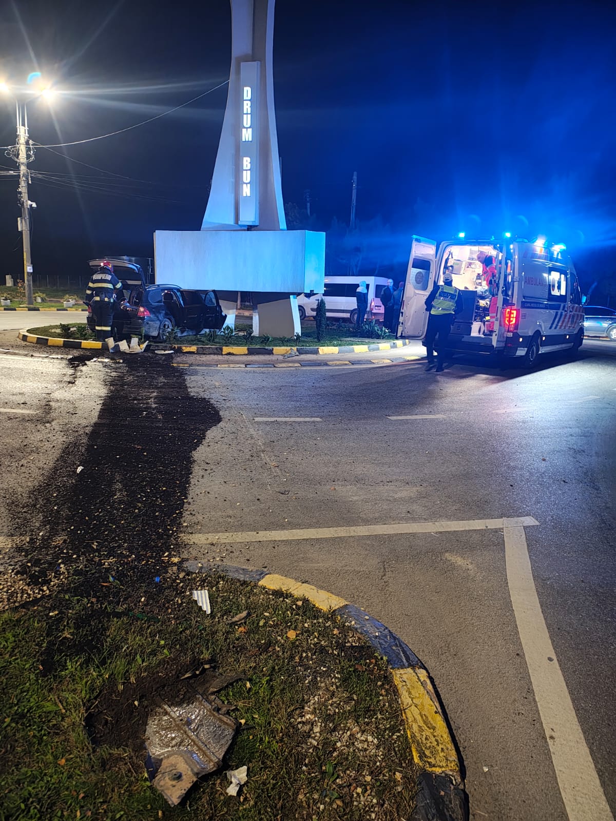 ULTIMĂ ORĂ: Doi bărbați s-au izbit cu mașina în sensul giratoriu de la ieșirea din oraș