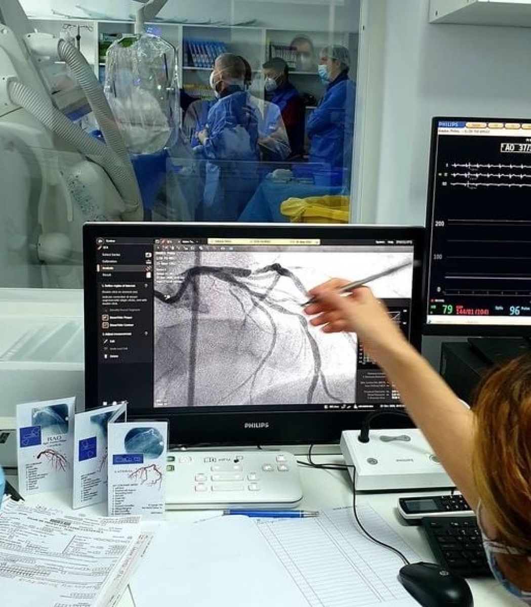 „S-a efectuat prima procedură terapeutică de angioplastie la un pacient cu o stenoză de 99 la sută. E o evoluție foarte bună a pacientului cu un rezultat foarte bun post-procedură. În urmă cu două zile s-au făcut investigații vizuale. Este vorba despre un bărbat de 56 de ani care în urmă cu două luni a suferit un infarct. A avut un tratament medicamentos pentru o perioadă, însă starea s-a agravat. L-am investigat și leziunea a fost dilatată cu succes, fără probleme intra-procedurale. Pacientul este în stare bună și mâine sperăm că va pleca acasă”,