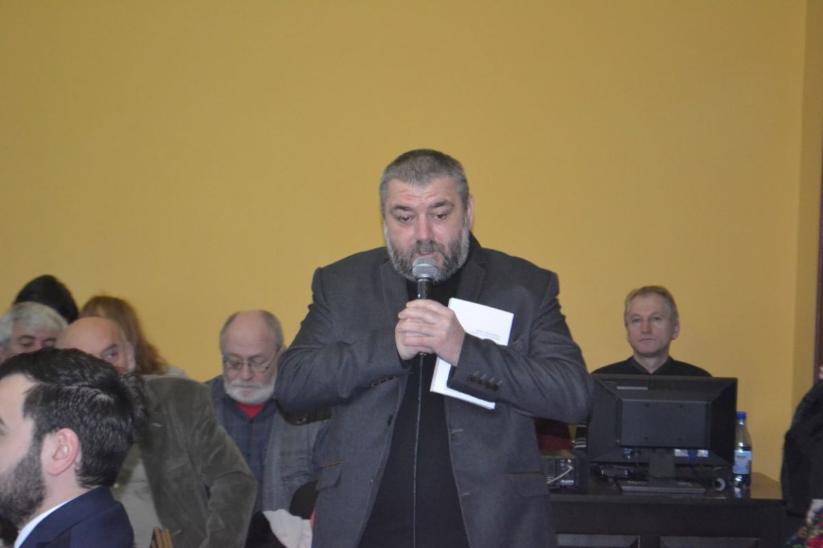 George Dâncu a fost prezent astăzi la ședința festivă de la Primărie, unde a adresat tuturor celor prezenți câteva cuvinte. Pe parcursul discursului său, poetul a ținut în mână o carte intitulată "Eminescu – 100 de poeme alese".
