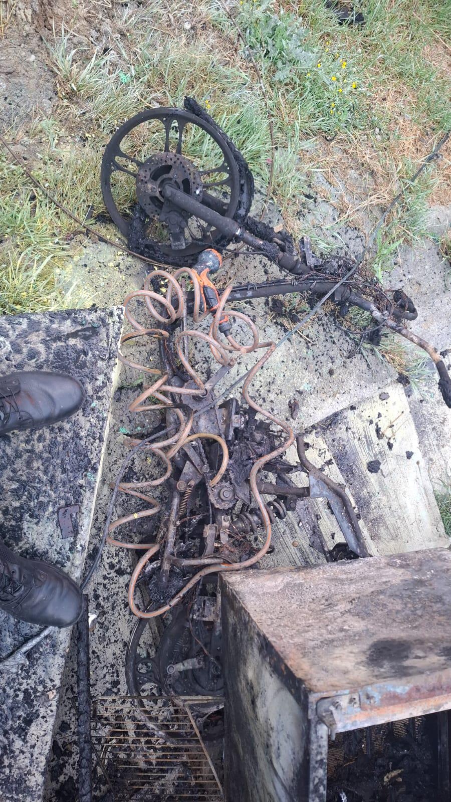 Un scuter a luat foc în curtea casei, vecinii au observat flăcările