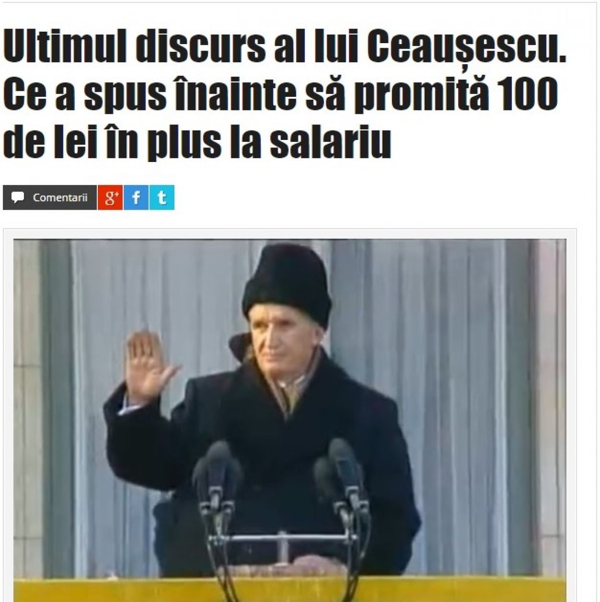 De altfel, pe 21 decembrie 1989, Nicolae Ceaușescu a vorbit pentru ultima oară în fața maselor de ”tovarăși și pretini”. Când a auzit rumoarea din fața Comitetului Central a promis o sută de lei în plus la salariu.
