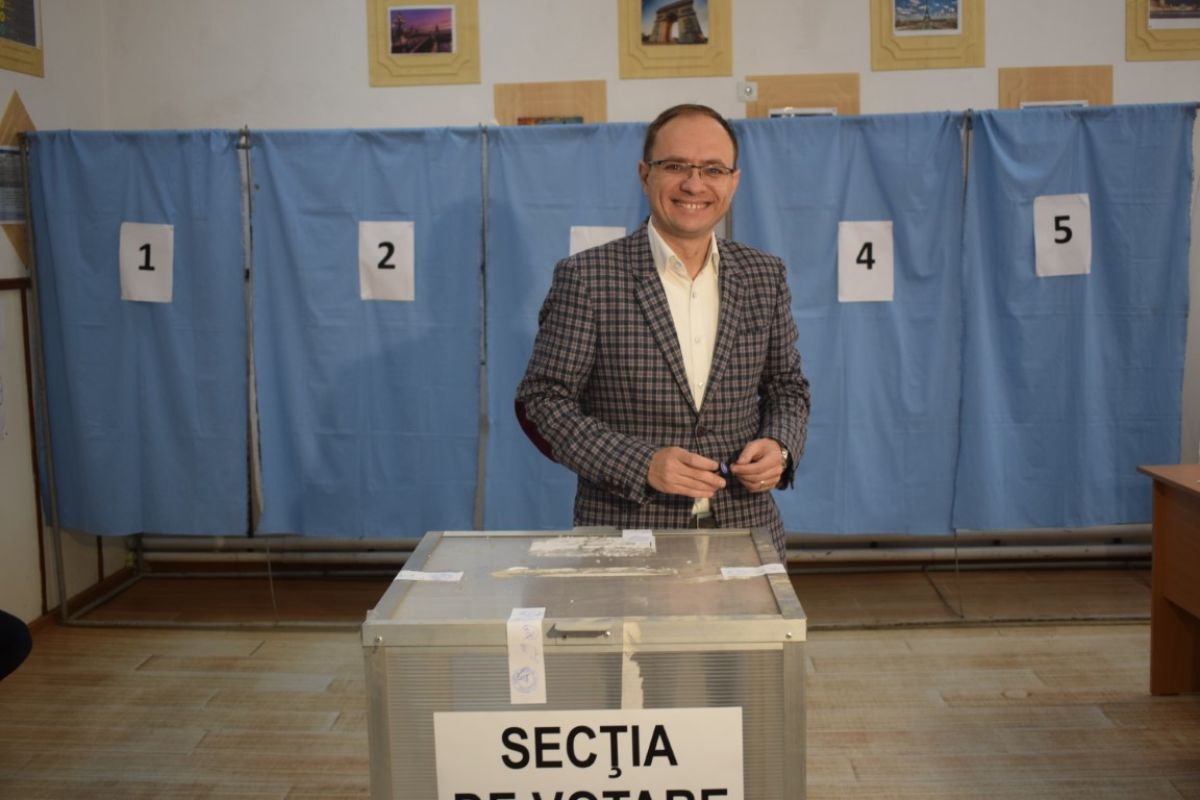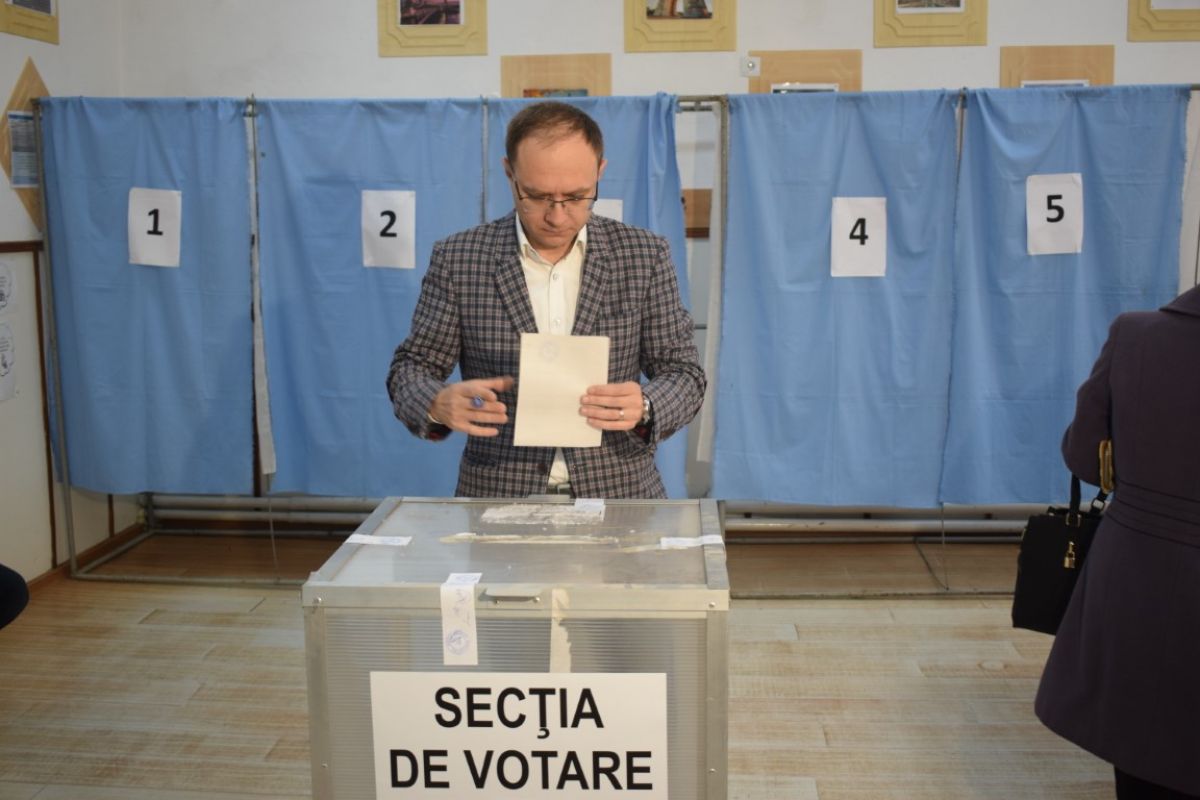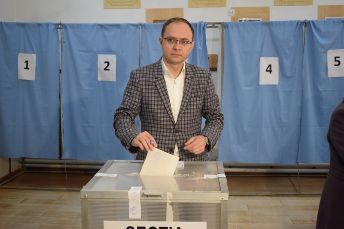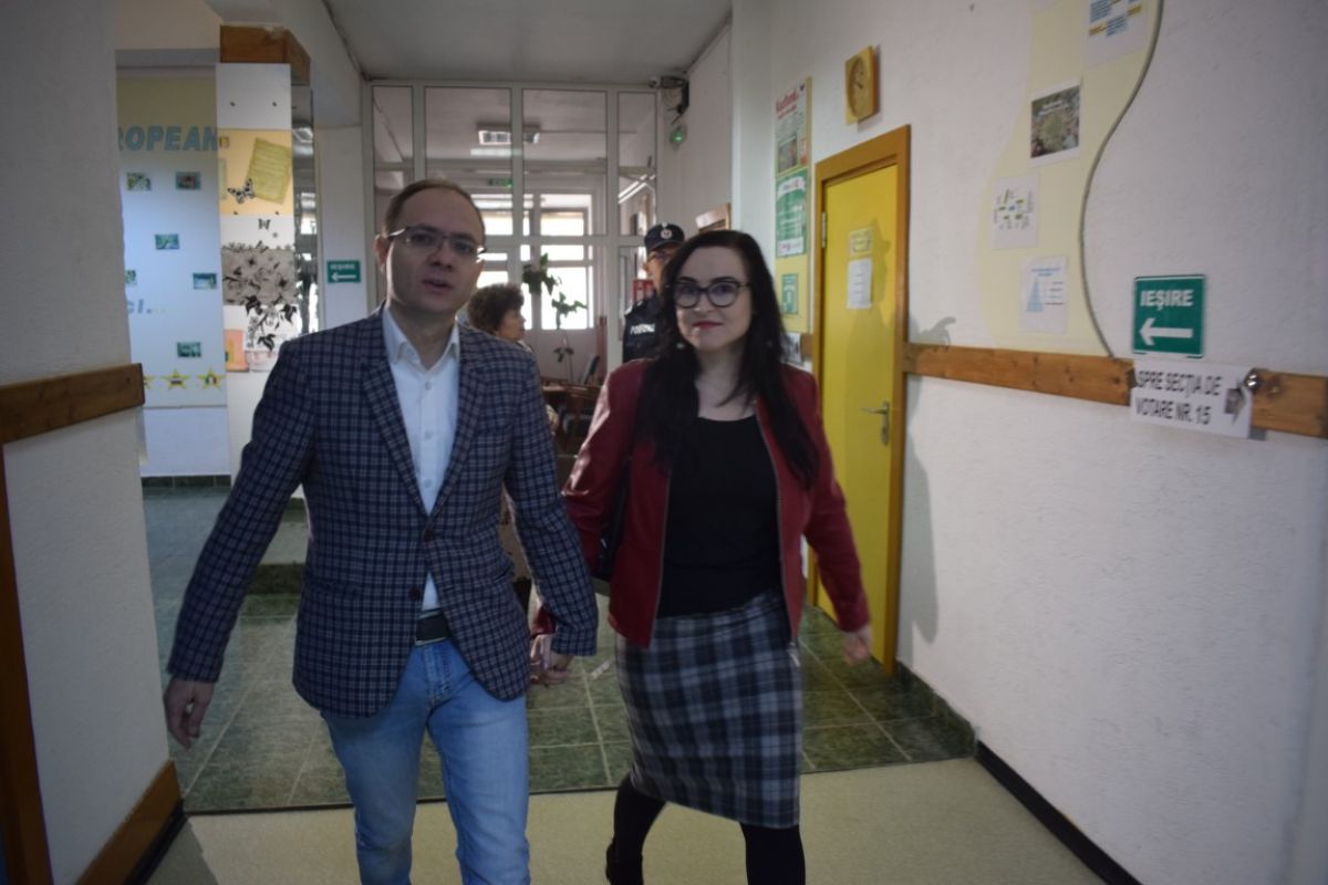 Viceprimarul Cosmin Andrei a votat la Școala Generală nr. 13. A venit la secția de votare însoțit de soția sa, Ana Maria.