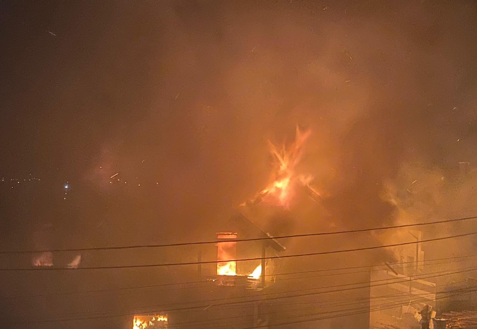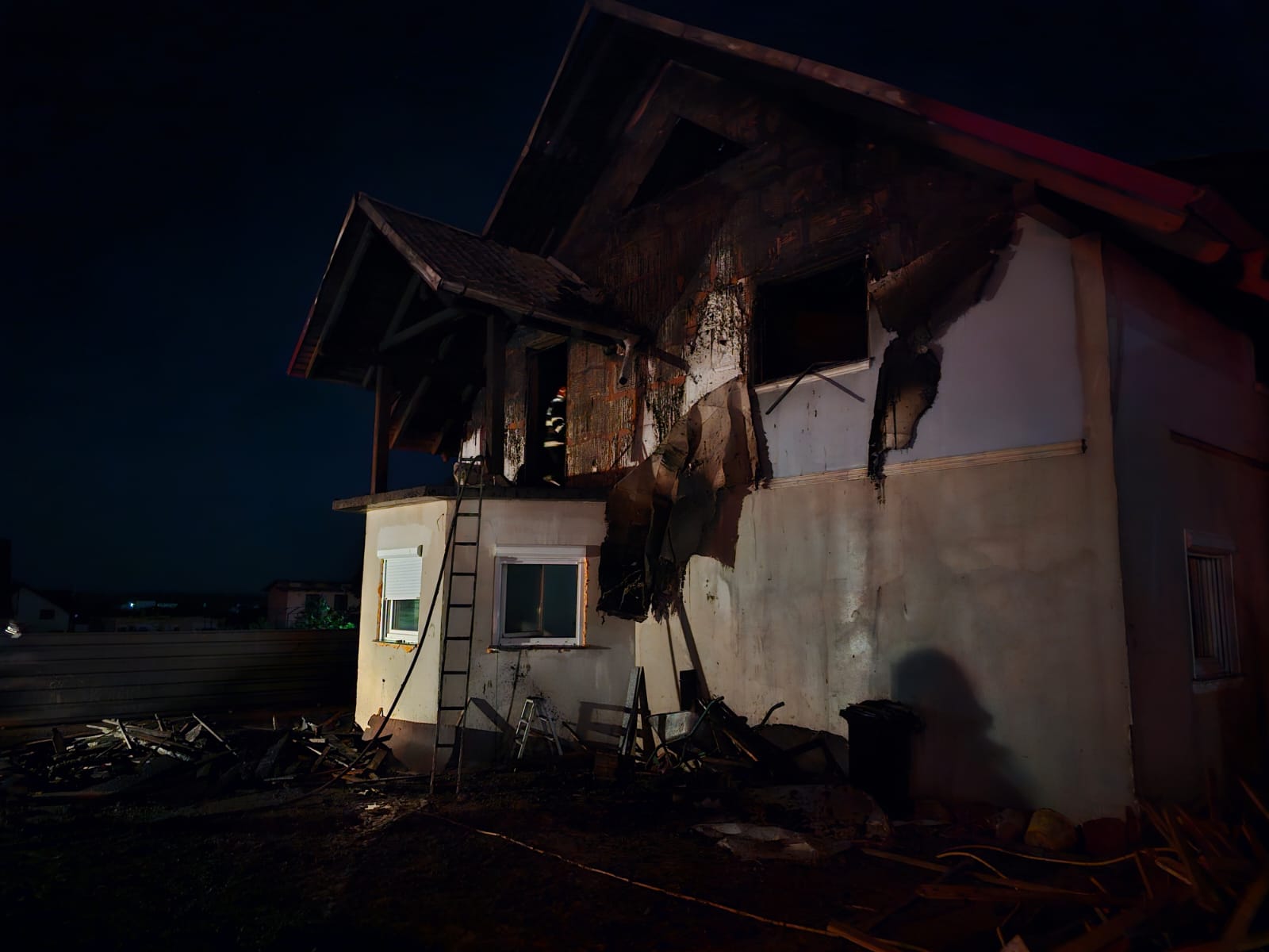 O casă cu etaj a fost cuprinsă de flăcări, cel mai probabil, din cauza jarului căzut din centrala termică pe materiale combustibile. Când s-a produs evenimentul, în locuință erau proprietarii și trei copii. Aceștia au fost treziți din somn de un zgomot puternic care venea dinspre camera centralei, lipită de casă. Au reușit să iasă afară și au văzut că flăcările s-au extins de la anexă, la acoperișul locuinței, dar și bunurile aflate la etajul clădiri.