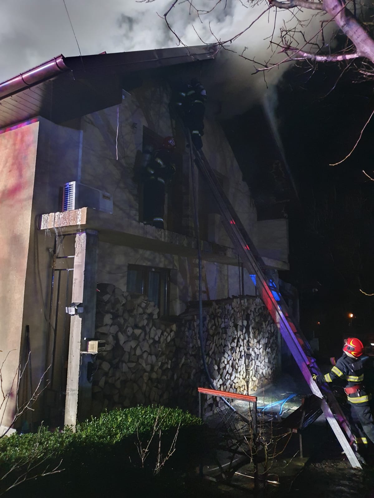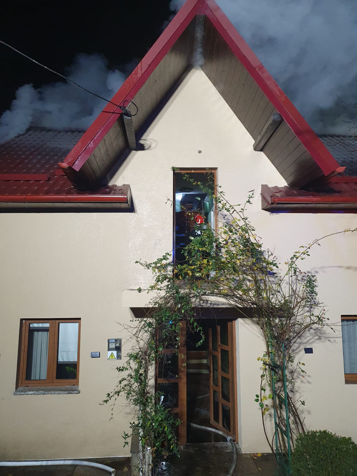 Acoperișul casei și bunurile dintr-o cameră, aflată la etajul construcției, au luat foc, cel mai probabil, din cauza unui coș de fum neizolat termic față de materialele combustibile.