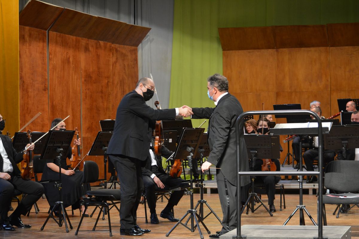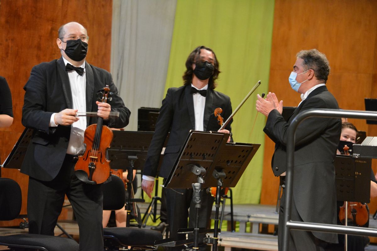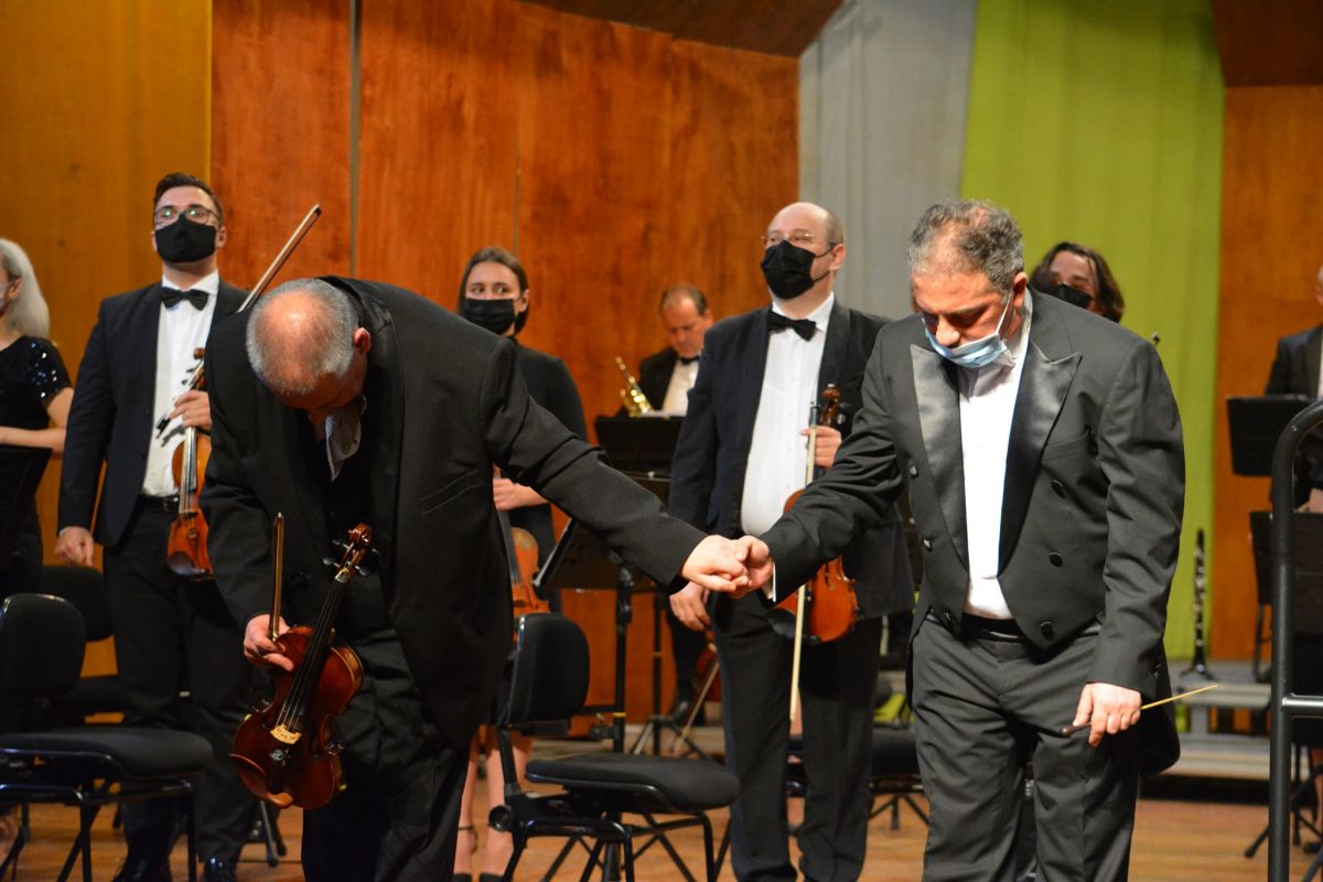 La final, într-un gest de generozitate artistică, dirijorul Alexandru Ganea și-a felicitat instrumentiștii, gestul fiind susținut cu aplauze de publicul meloman.