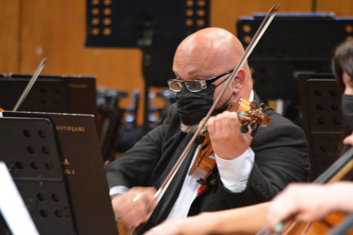 Florin Ionescu-Galați a oferit melomanilor botoșăneni, vineri seara, o interpretare de excepție a părții solistice din lucrarea lui Saint-Saëns, demonstrându-și cu asupra de măsură virtuozitatea violonistică.