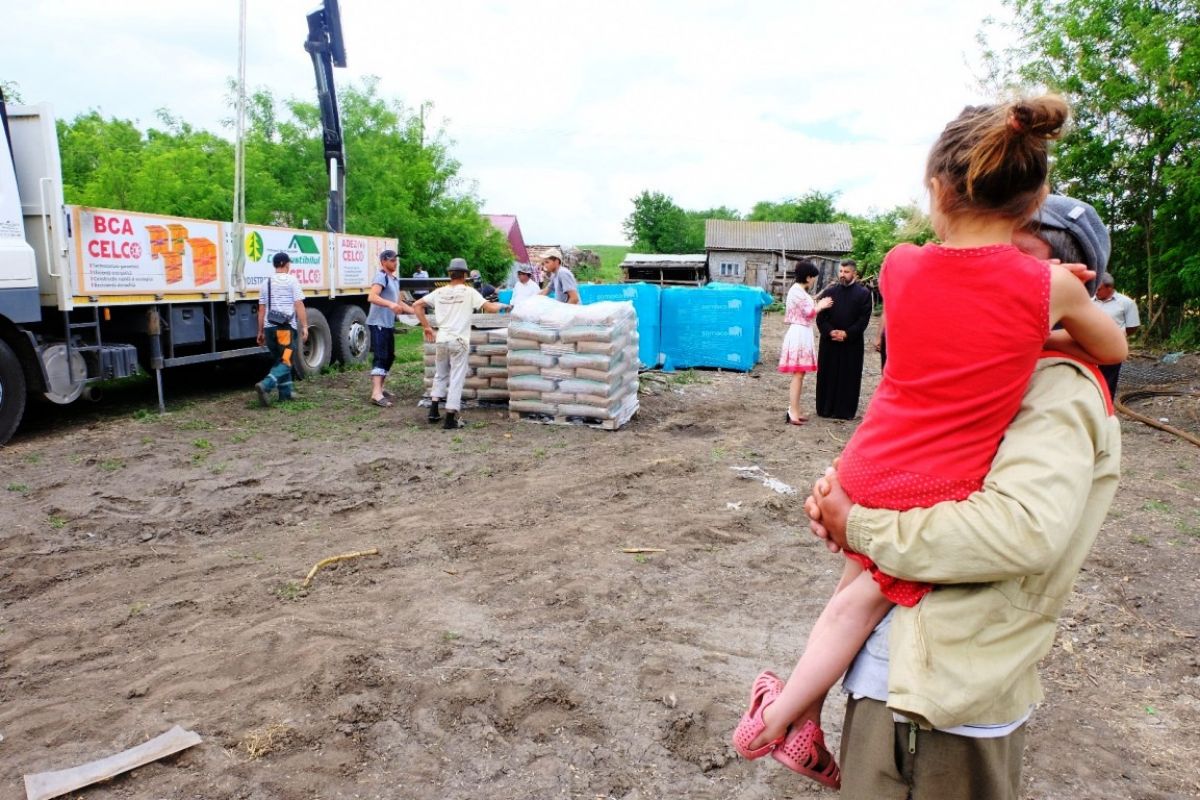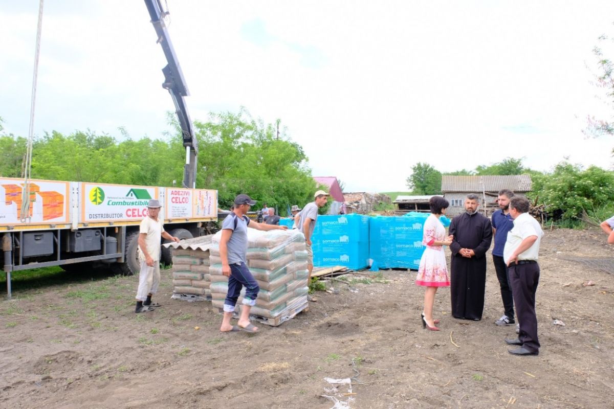 Și localnicii au dat dovadă de solidaritate, ajutând la descărcarea materialelor. La rândul său, preotul Ioan Pădurariu a găsit şi echipa cu care, în următoarele zece zile va ridica din temelii noul cămin al familiei Apăvăloaie, în care să înceapă o nouă viaţă.