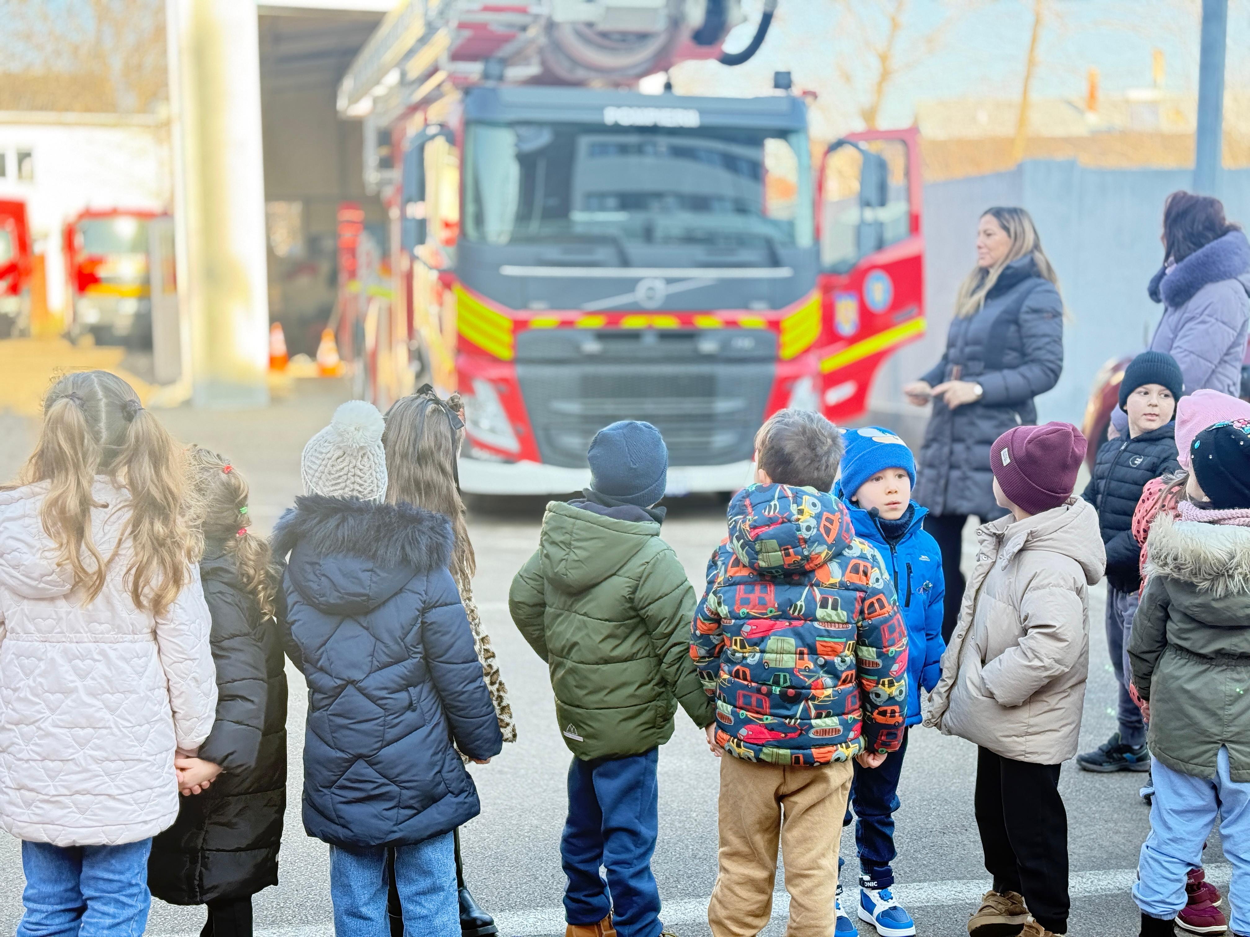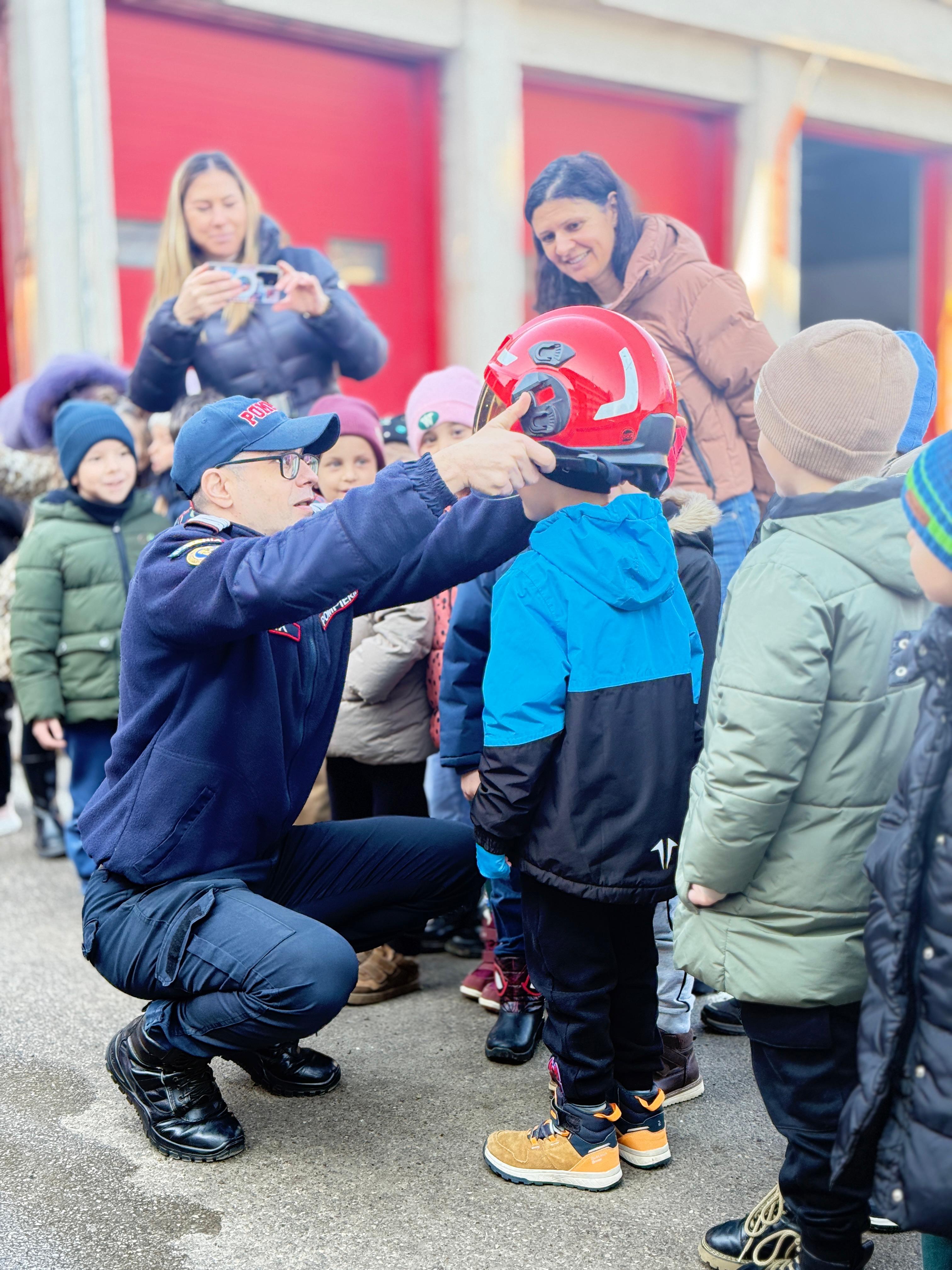 Cei mici au fost în centrul atenției. Au urcat în autospecialele de intervenție, au probat casca și echipamentul de protecție și au aflat cum funcționează furtunul utilizat la stingerea incendiilor.