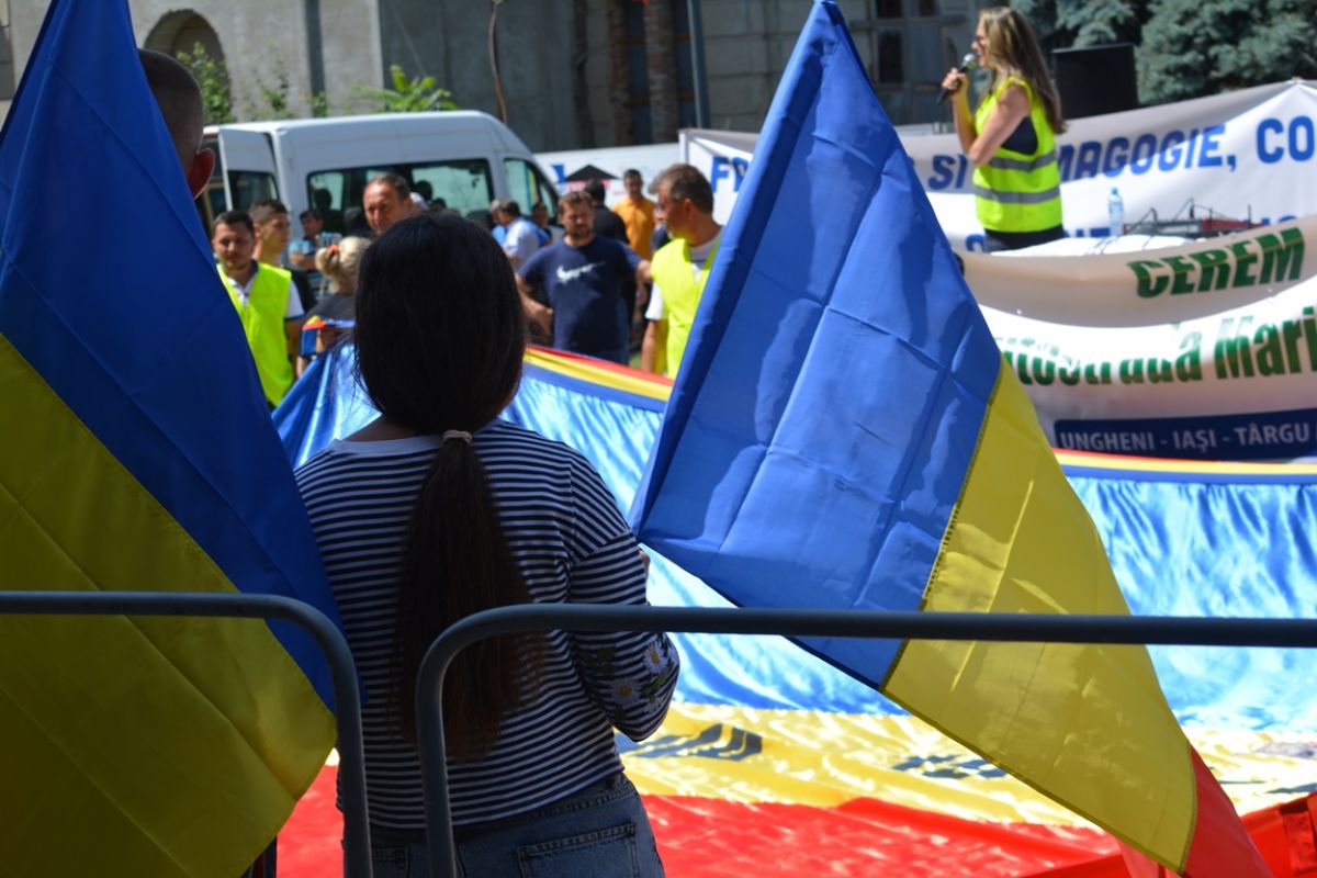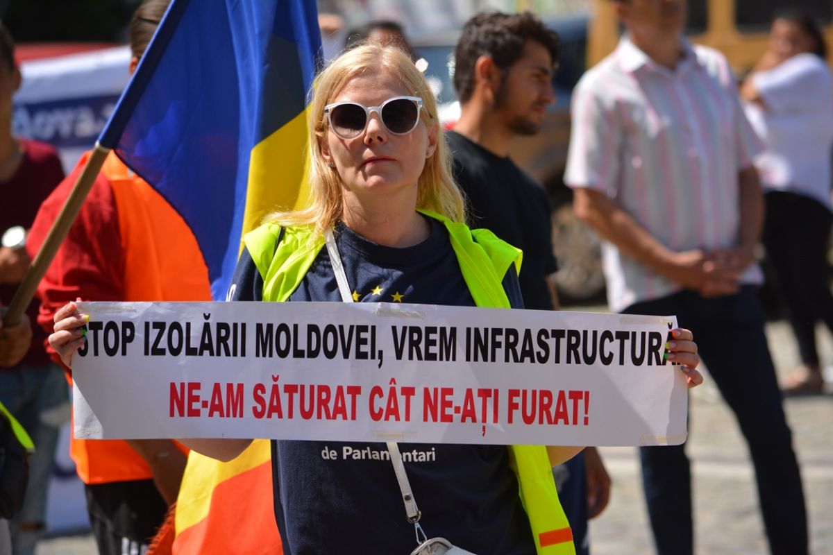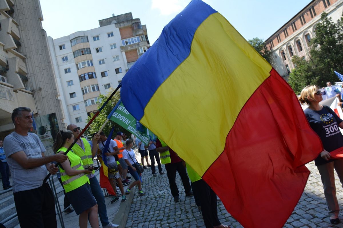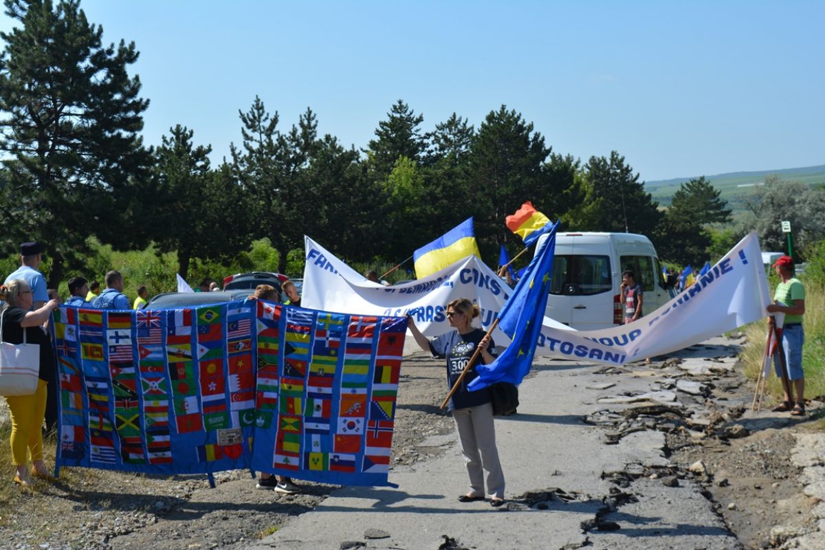 Nu au lipsit însă mai mulți ieșeni, de la Asociația Împreună pentru A8, veniți cu steaguri cu sigla ONG-ului și chiar Gregoriana Tudoran, candidatul la alegerile europarlamentare al organizațiilor apolitice moldovene care luptă pentru infrastructura din această parte a țării.