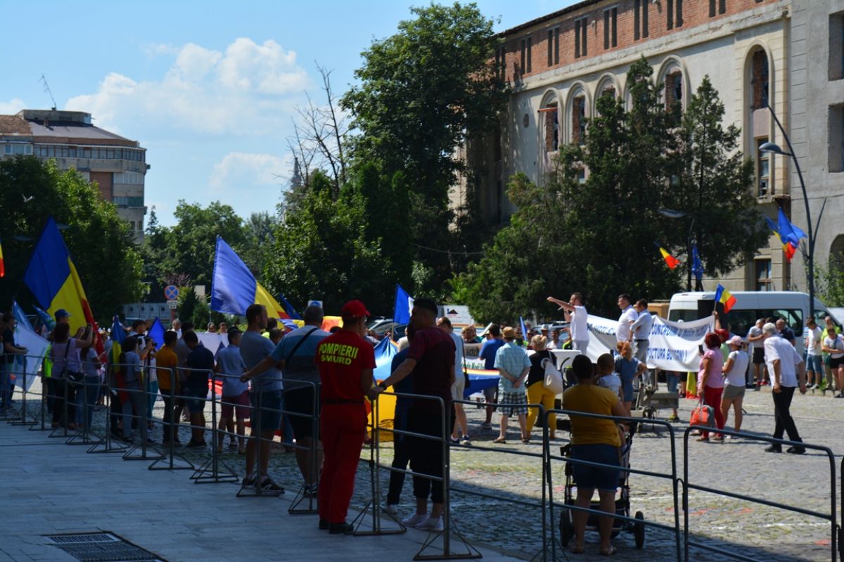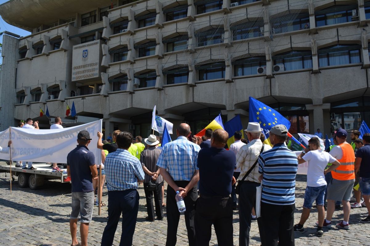 Pe parcursul protestului Prefectura și Consiliul Județean păreau părăsite: nu erau mașini în parcare și cu greu vedeai o oficialitate prin Palatul Administrativ.