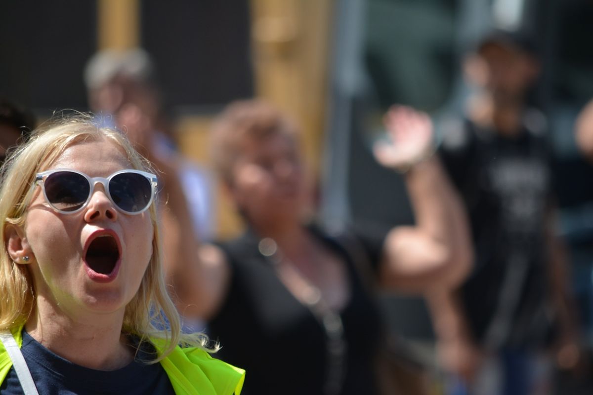 Ba mai mult, la un șantier de la un bloc din Calea Națională muncitorii au început să le strige demonstraților: ”la muncă, băăiii”.