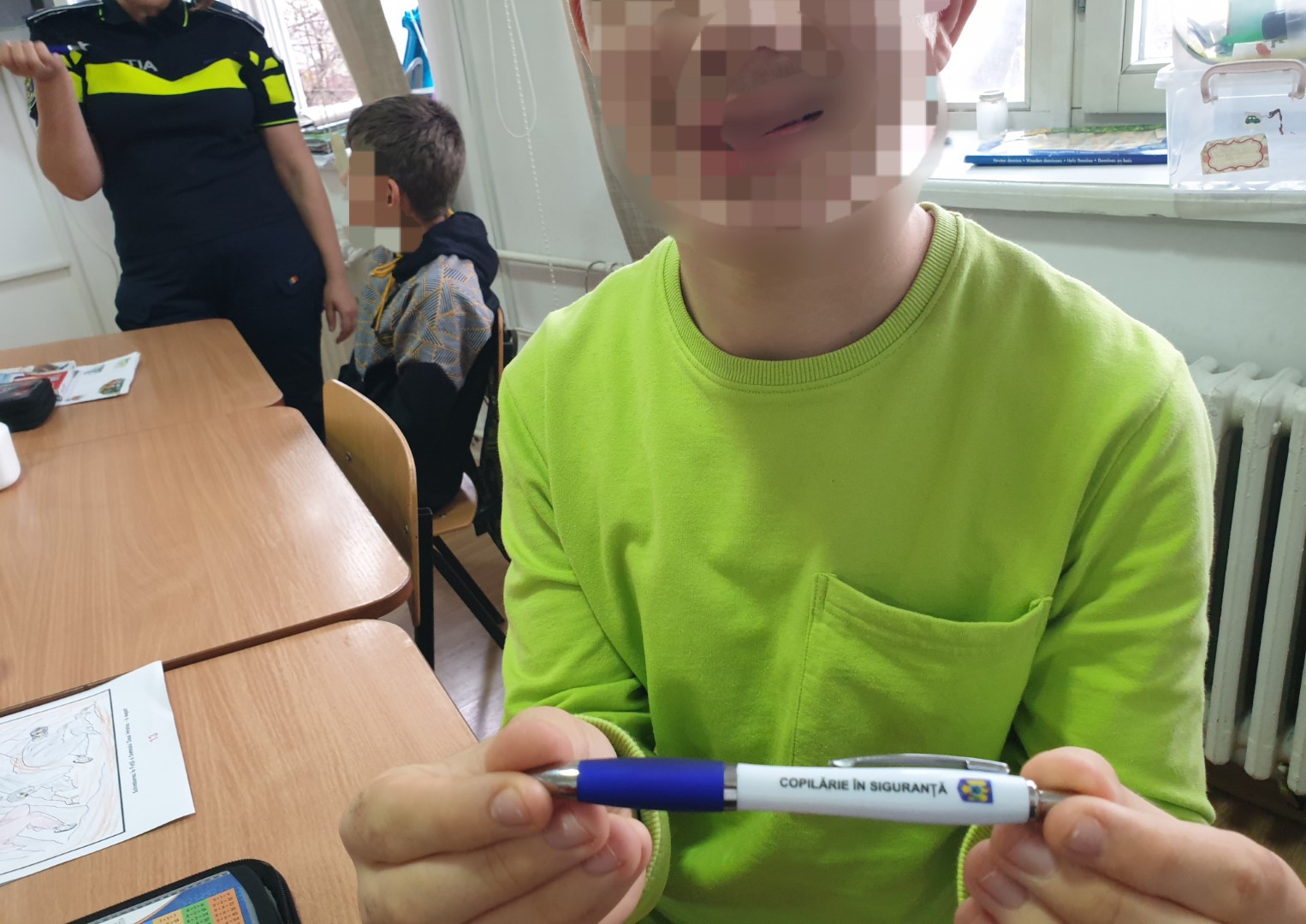 La sfârşitul activităţii doamna comisar le-a oferit şi un mic dar, câte un pix cu care ei să îşi scrie cât mai frumos şi corect temele.