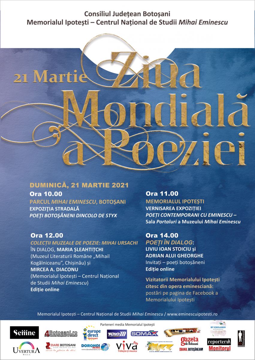 Cu prilejul Zilei Mondiale a Poeziei, Memorialul Ipotești – Centrul National de Studii „Mihai Eminescu” organizează, pe 21 martie, mai multe activități.