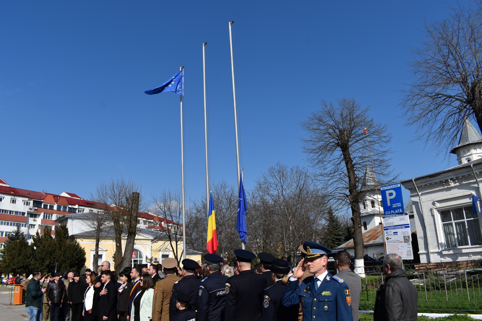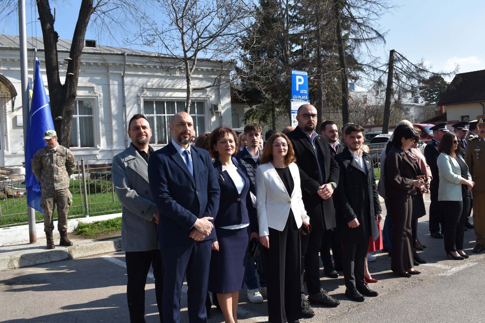 După ce primarul Cosmin Andrei a dat onorul, a urmat intonarea Imnului Național, concomitent cu înălțarea pe catarg a drapelelor României și NATO. Nu au fost discursuri ale oficialităților, însă organizatorii au transmis prin câteva cuvinte semnificația Zilei NATO.