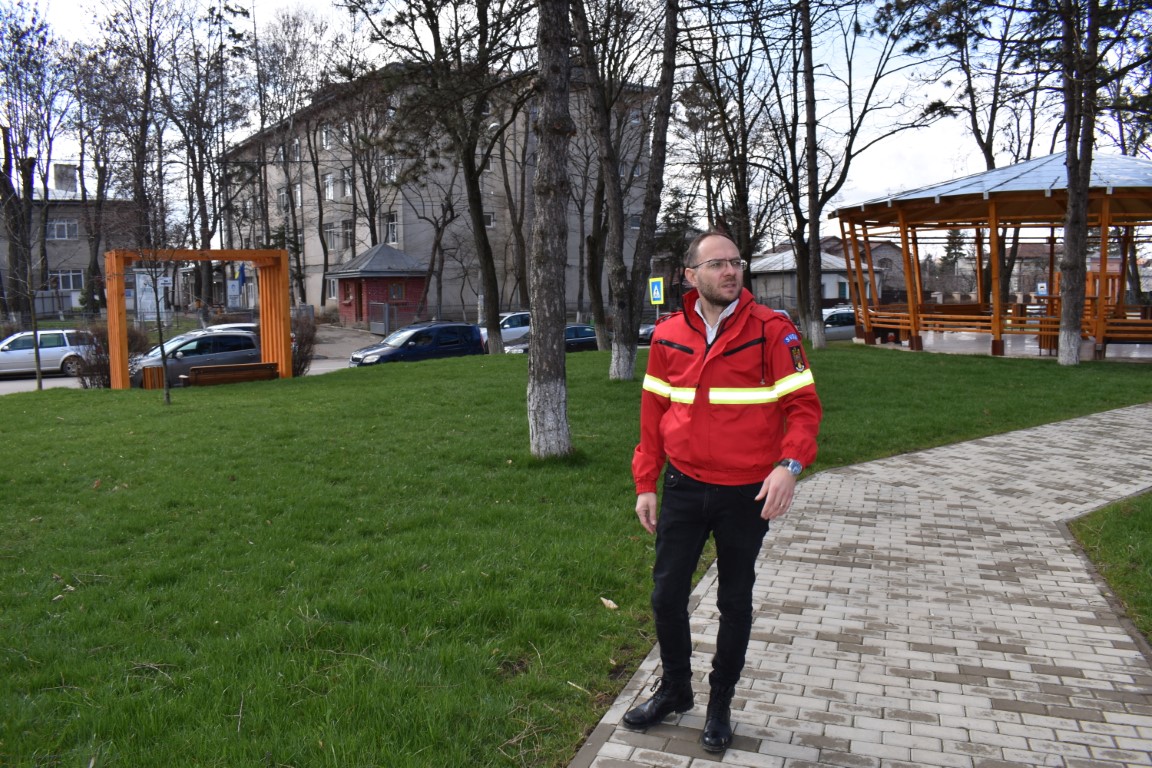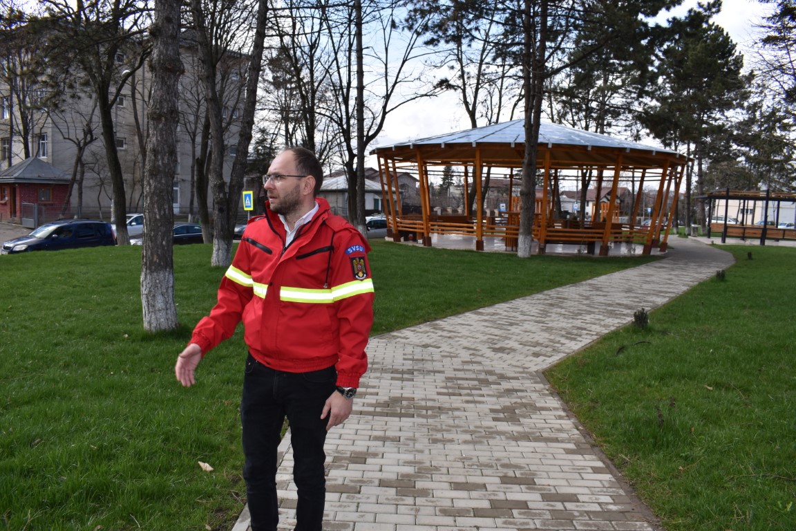 „Suntem pe spațiul de relaxare adiacent Liceului Pedagogic, o investiție realizată cu fonduri europene și astfel am putut să punem bănci smart, foișoare, spații de relaxare, spații verzi cu sistem de irigații. Avem locuri de parcare în zonă, este o investiție foarte bine primită de către cei din zonă și de către elevii care pot veni aici să susțină inclusiv cursuri informale”.