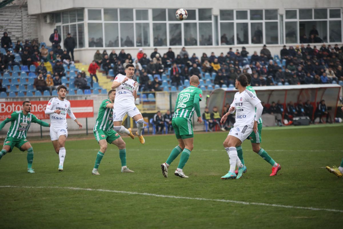Imediat după, jucătorul Matei centrează de pe partea stângă, iar Ștefănescu încearcă să înscrie cu o execuție acrobatică.
