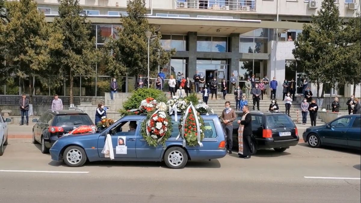 În aceste condiții, angajații instituției au ieșit pe trepte și de la depărtare au urmărit mașina în care se afla sicriul colegei lor. Și-au luat rămas bun într-o atmosferă apăsătoare de tristețe și într-o liniște mormântală.
