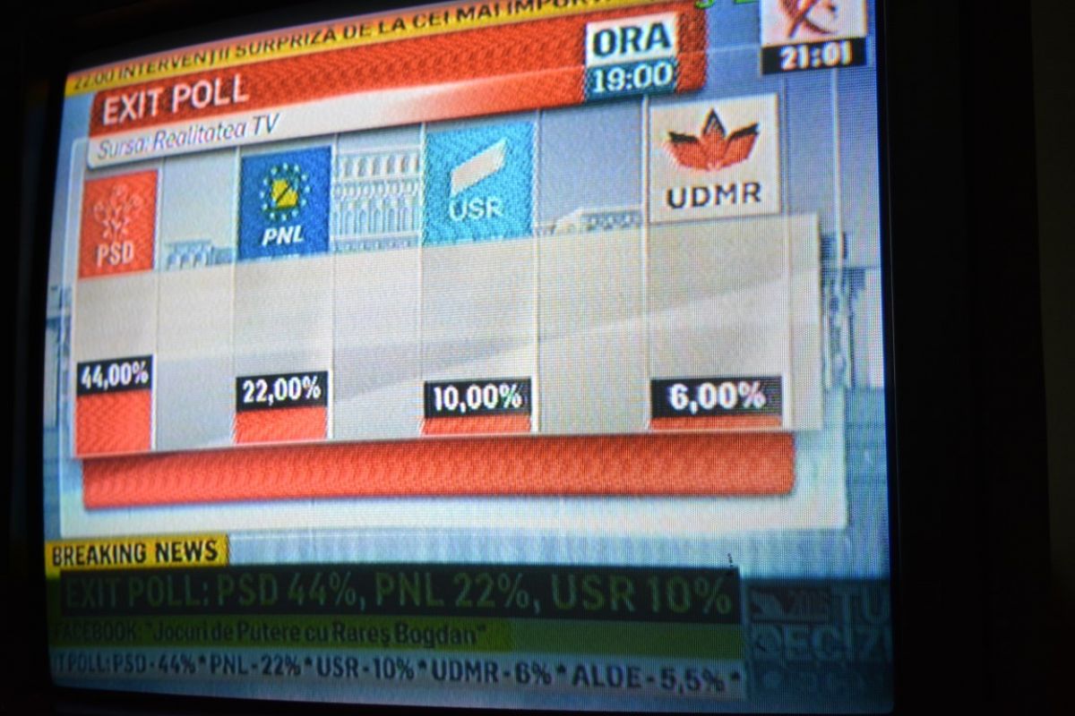 A coborât tăcerea în Maxim Gorki. Liberalii s-au strâns duminică seară la fostul sediu al PDL, iar la ora 21:00 au urmărit în direct la TV exit-poll – urile anunţate de Realitatea TV.