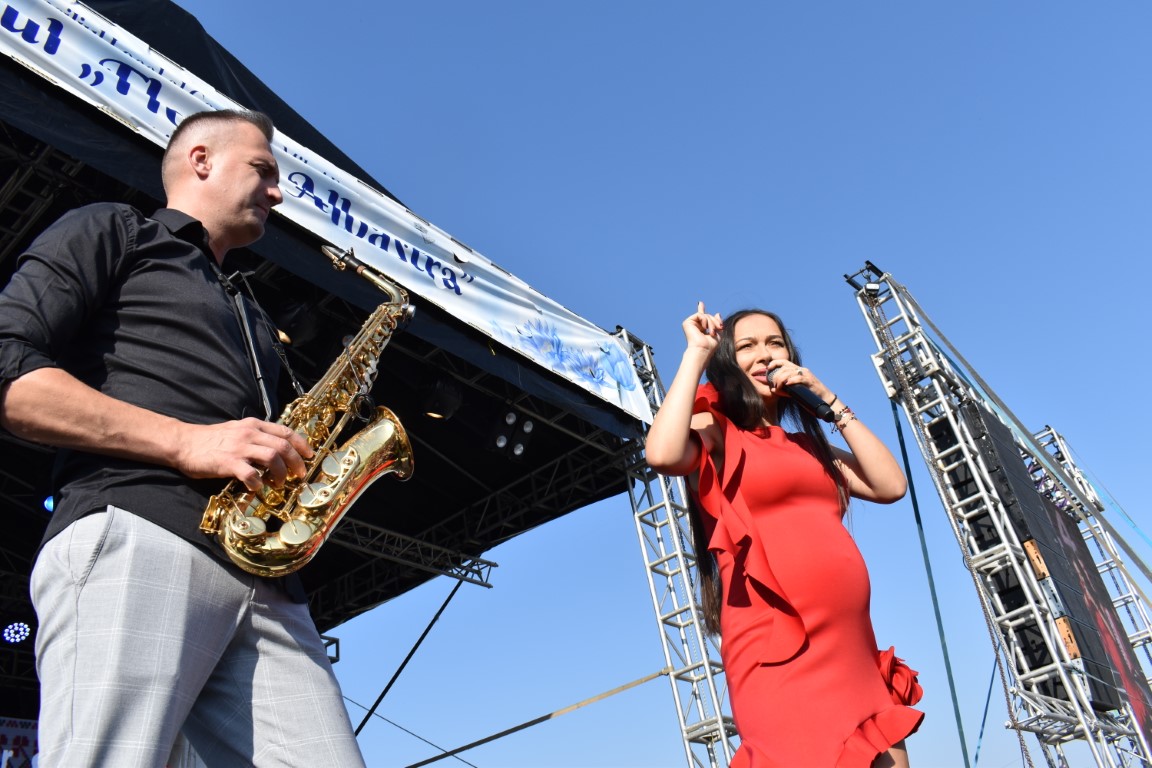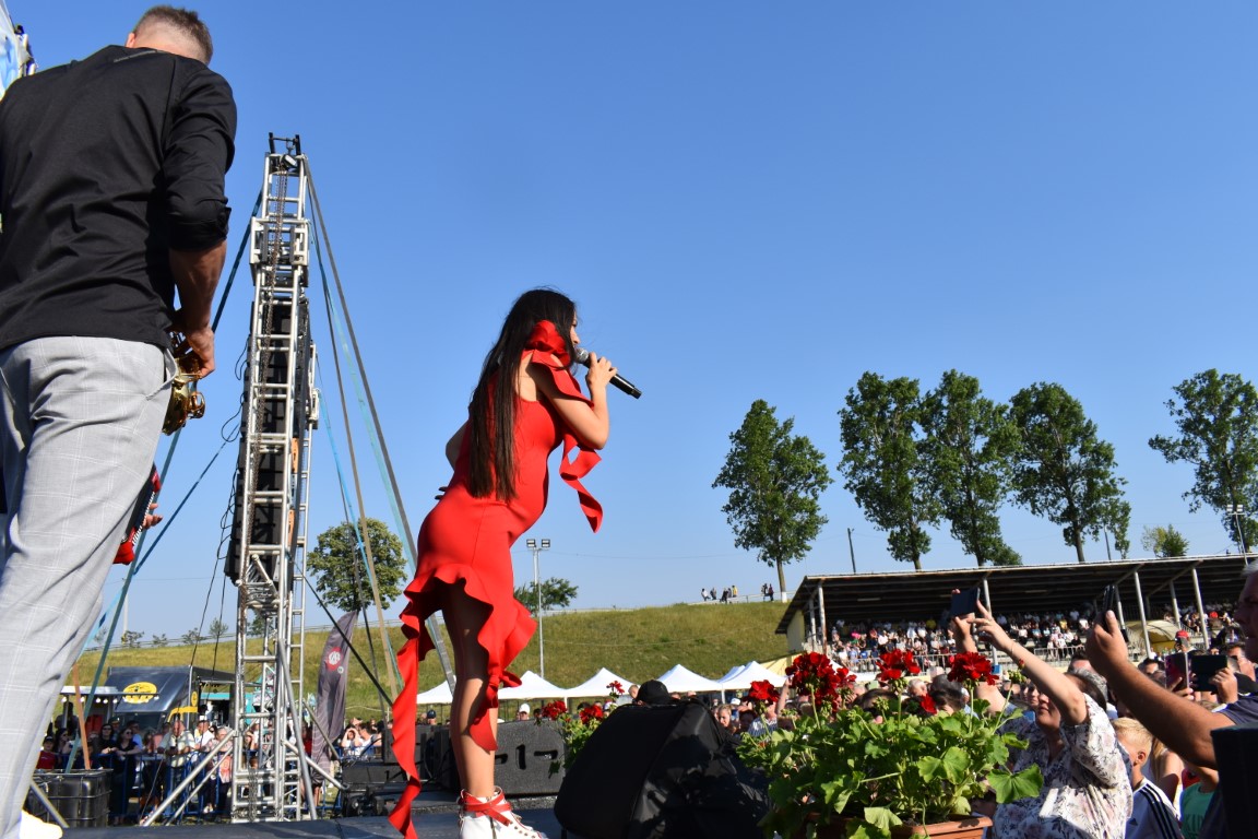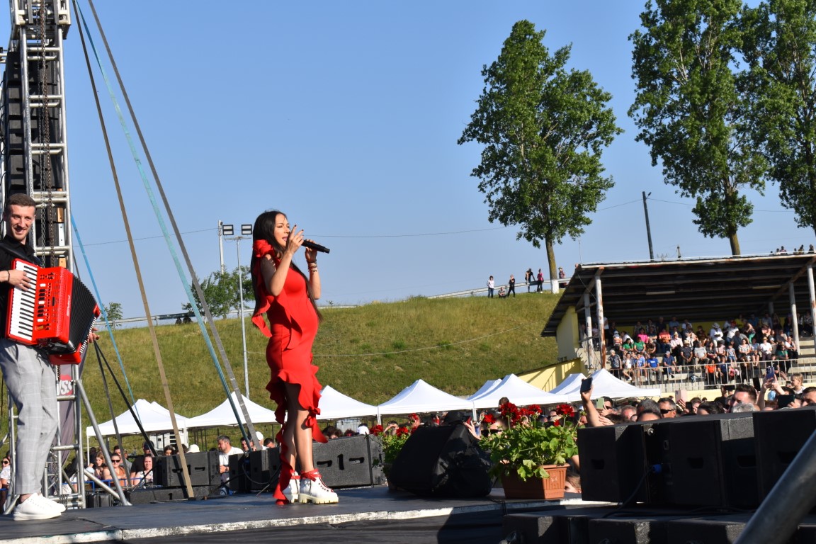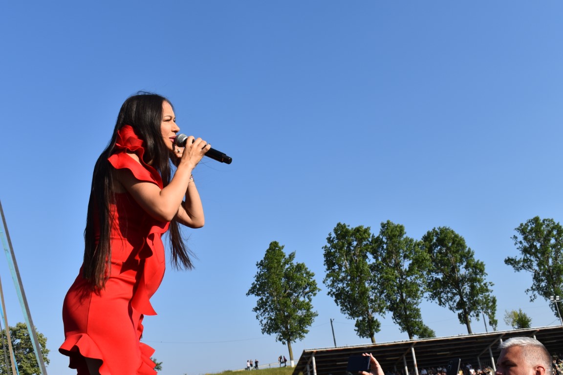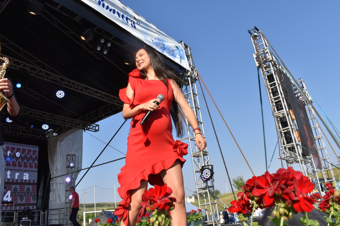 În ciuda sarcinii care este deja vizibilă, Vlăduța Lupău a urcat pe scenă, a cântat și a dansat alături de publicul numeros adunat pe stadionul din Ipotești.