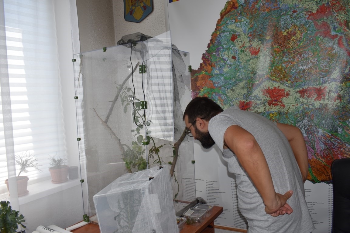 Biroul directorului nu este unul solitar. Iulian Axinciuc lucrează în aceste luni înconjurat de o serie de vietăți exotice. O serie de insecte care nu se găsesc în România, aduse din păduri tropicale.