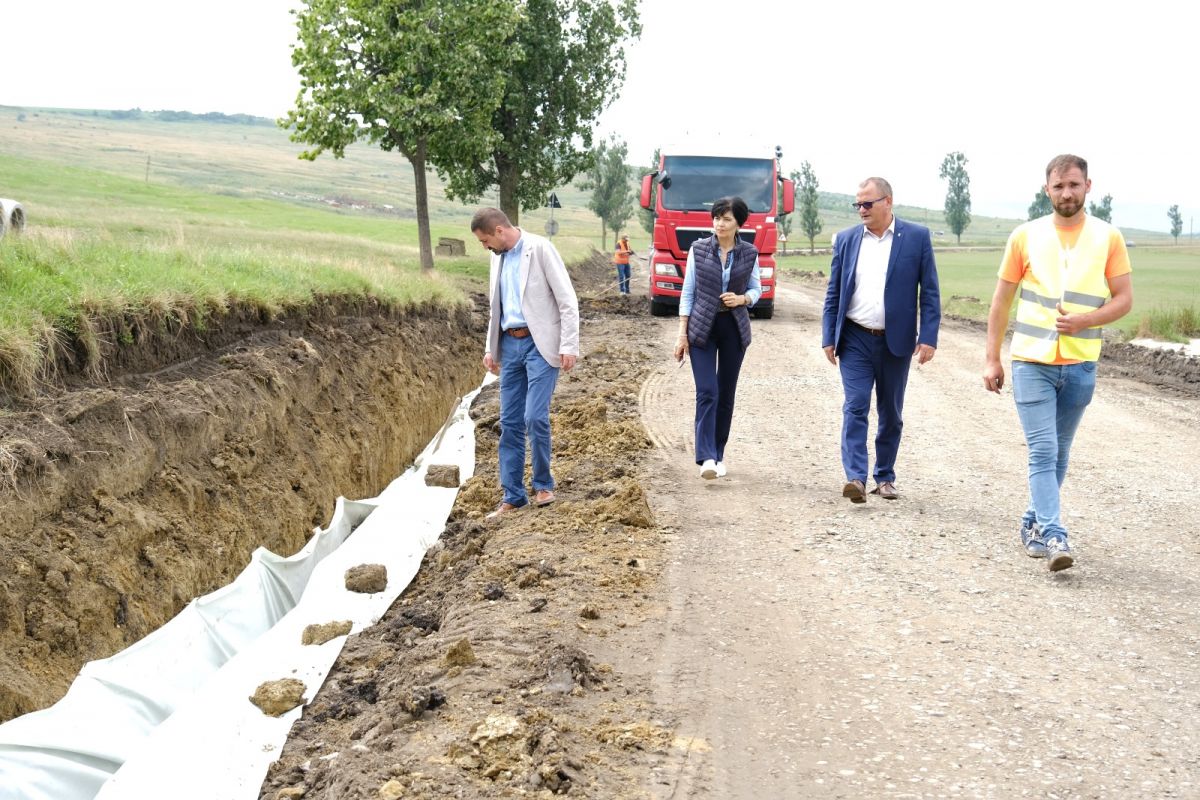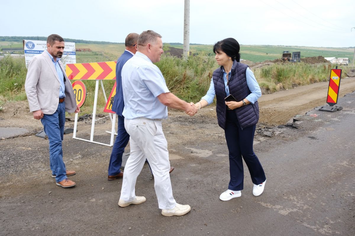 Președintele Consiliului Județean (CJ), Doina Federovici, vicepreședintele CJ Dorin Birta și directorul Direcției Județene de Drumuri și Poduri, Cătălin Gheorghian, au inspectat lucrările de modernizare a sectoarelor de drum din sudul județului.