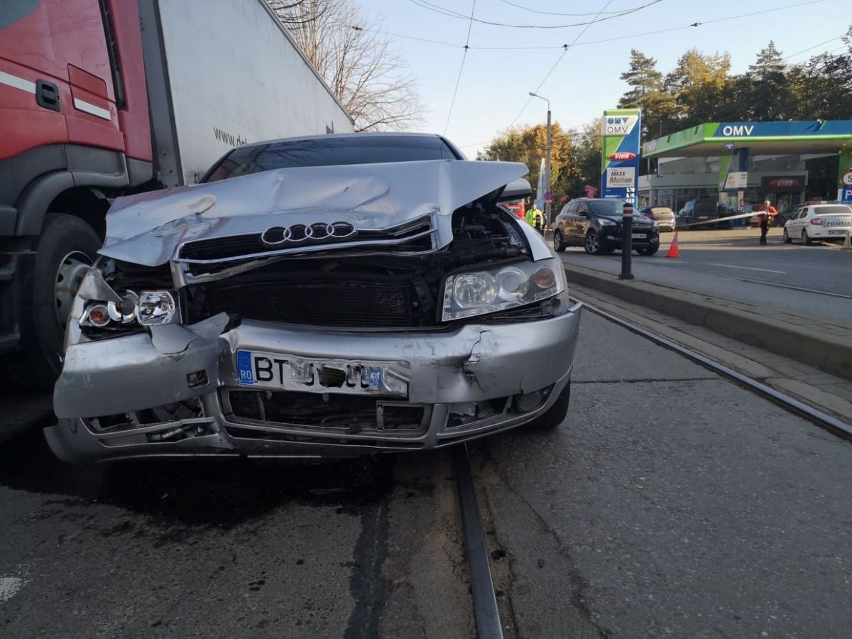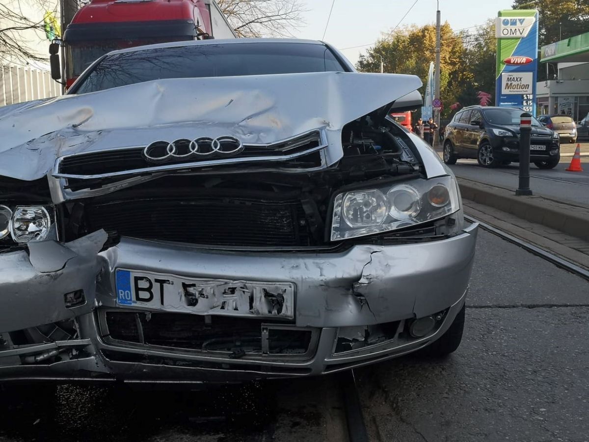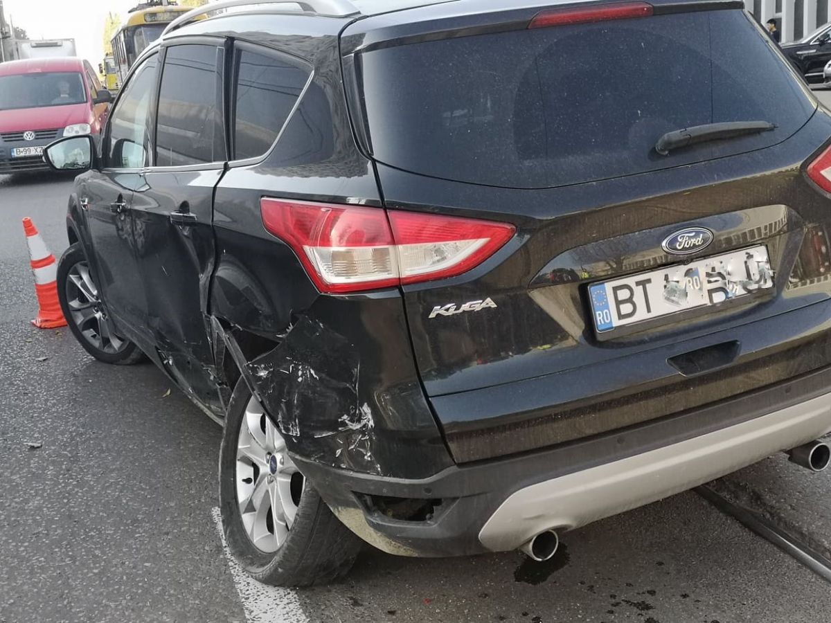 Este vorba despre o mașină de teren Ford Kuga, la volanul căruia se afla o femeie, inspector școlar în cadrul ISJ Botoșani, și care în momentul manevrei a fost lovită puternic de un Audi.