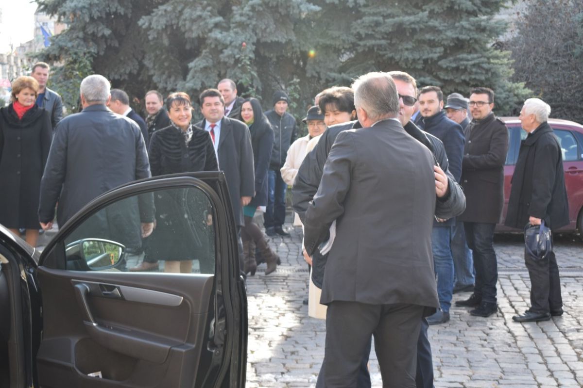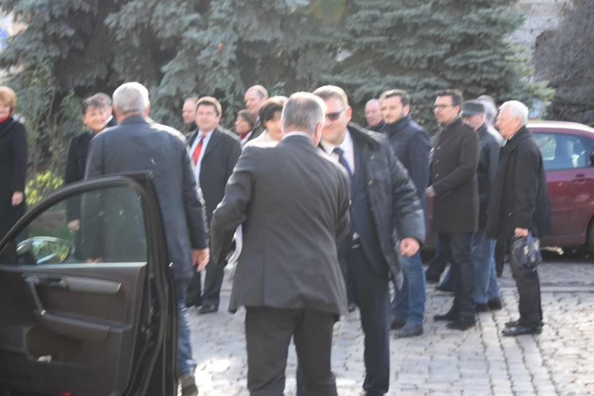 Au preferat traseul prin Piața Revoluției și în fața Primăriei Botoșani l-au întâlnit pe președintele PNL Botoșani care tocmai urca în mașină.