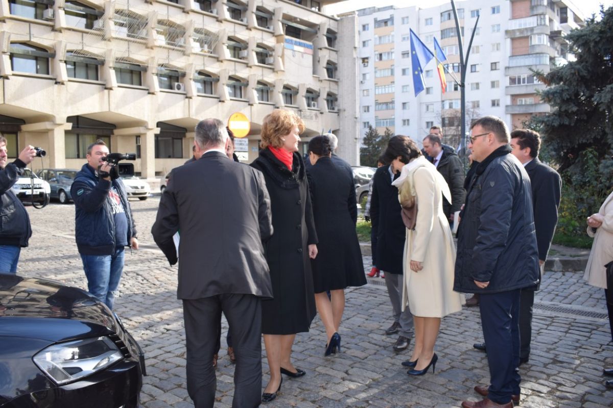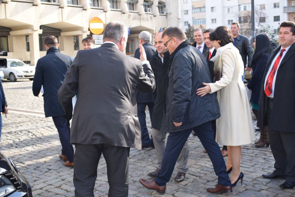 Primarul Cătălin Flutur a coborât și a dat mâna în primă fază cu Costică Macaleți apoi s-a pupat pe obraji cu doamnele candidate. Și-au urat succes reciproc după care fiecare și-a văzut de propriul drum.
