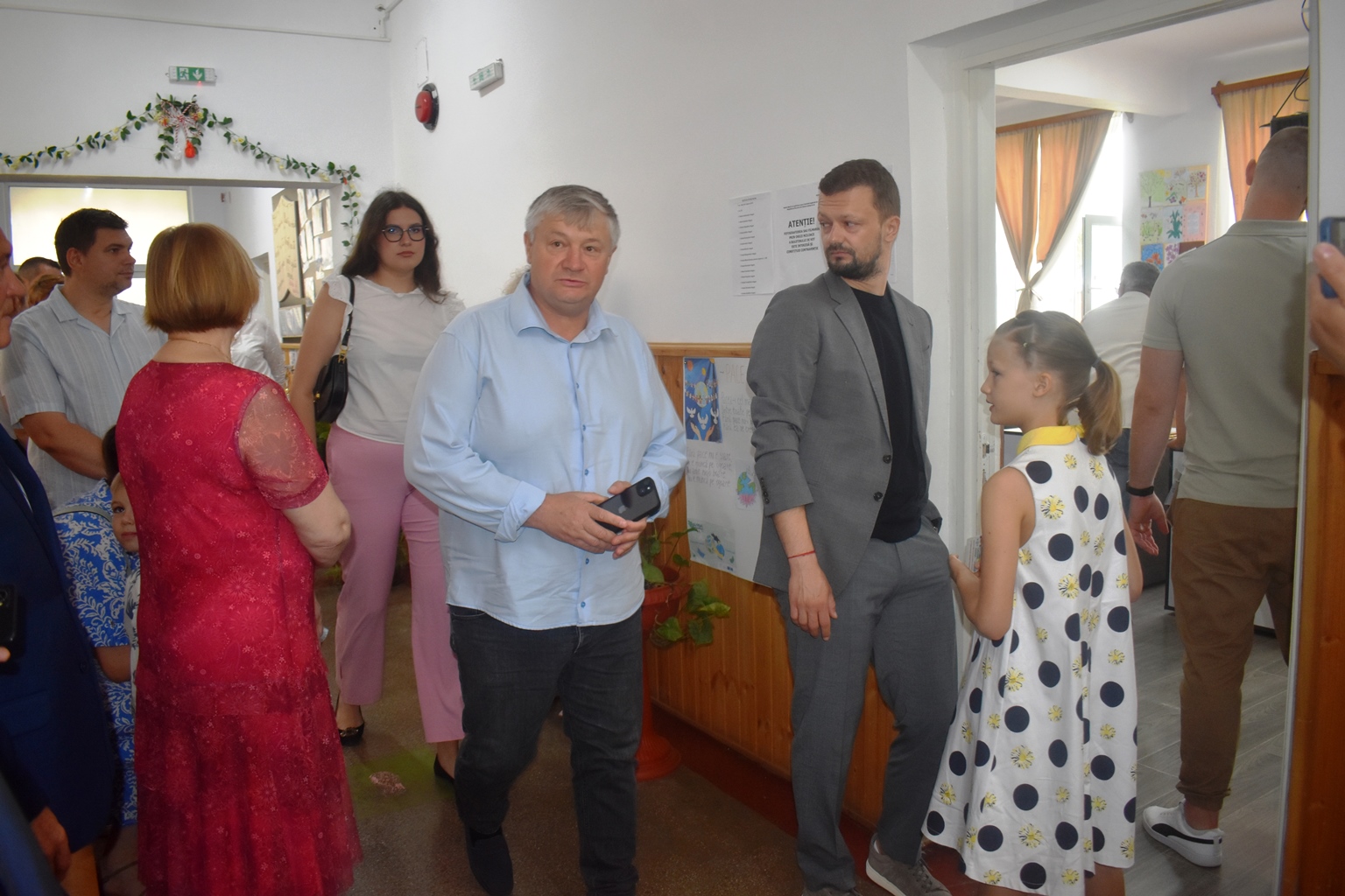 Doar că era coadă la urne, așa că a trebuit să mai aștepte vreo 20 de minute pe holul unității de învățământ.