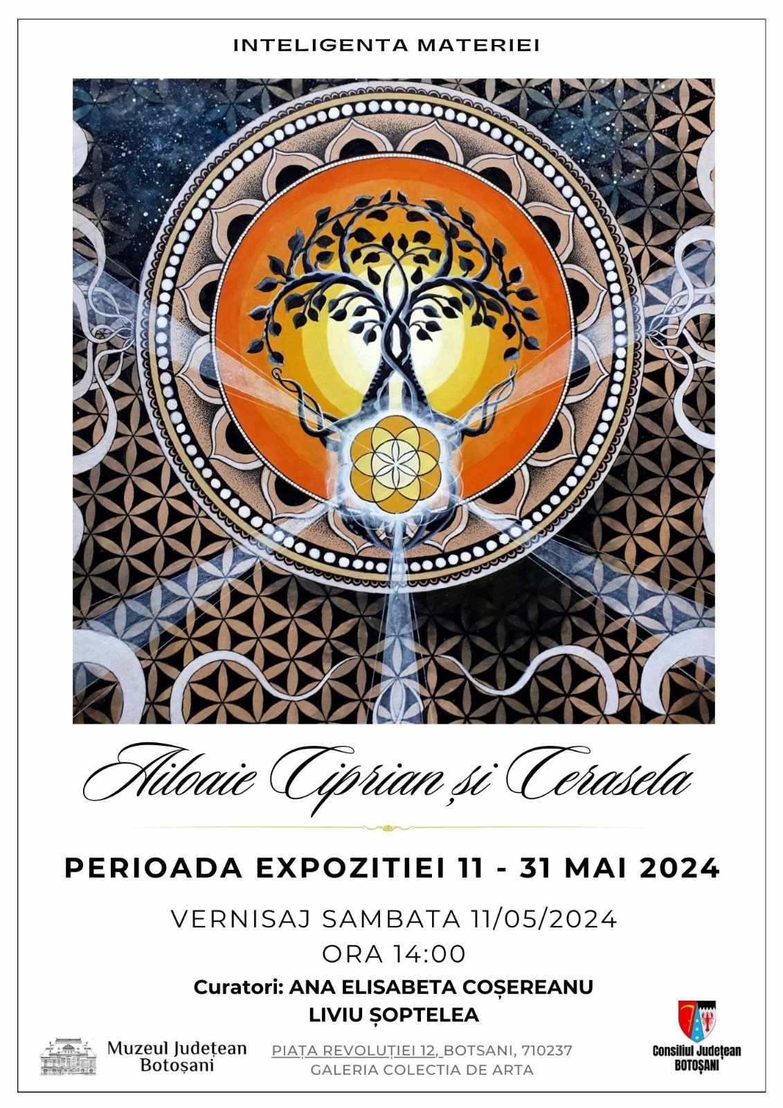 Muzeul Județean Botoșani - Secția de Artă Plastică și Etnografie găzduiește, în perioada 11 – 31 mai 2024, în spațiul Colecției de Artă Botoșani, expoziția Inteligența Materiei– cu lucrări semnate de Cerasela și Ciprian Ailoaie, artiști la Divine Creation Art, Dorohoi.