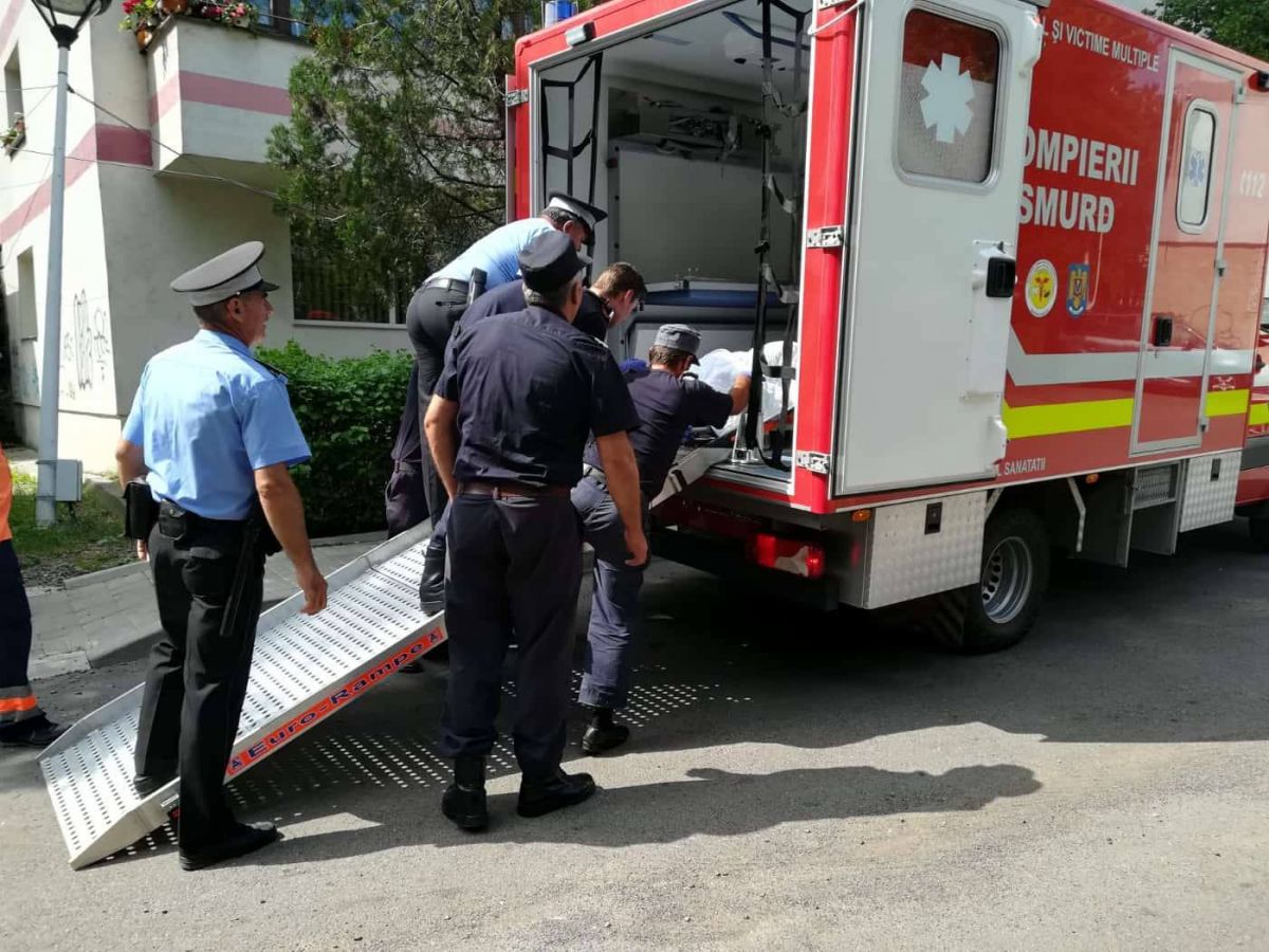 În jurul orei 10: 45 aproximativ 10 politiști locali, ambulanțieri și pompieri au reușit să plece cu pacientul la Spitalul Județean.