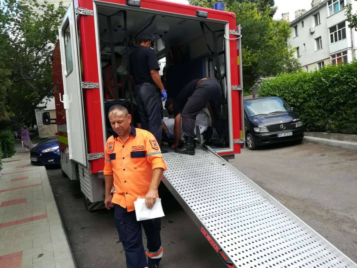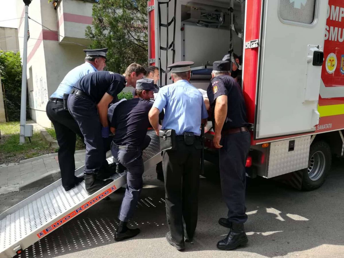 Ca atare, s-a cerut sprijinul SMURD-ului, care a trimis la fața locului o autospecială de dimensiuni mai mari deservită de mai mulți pompieri ca să–l coboare pe bărbat tocmai de la etajul cinci.