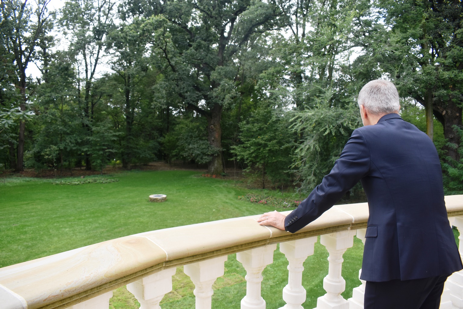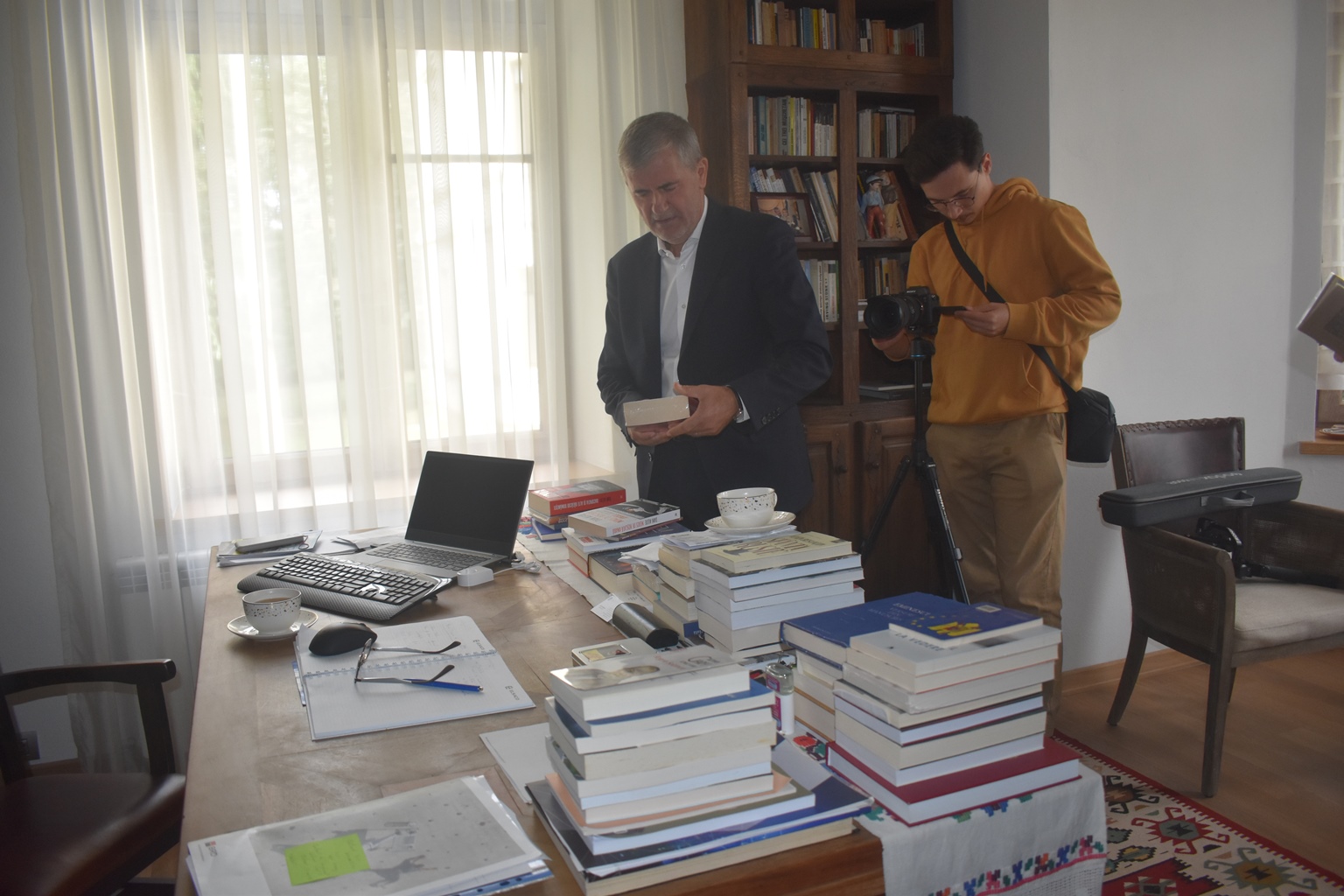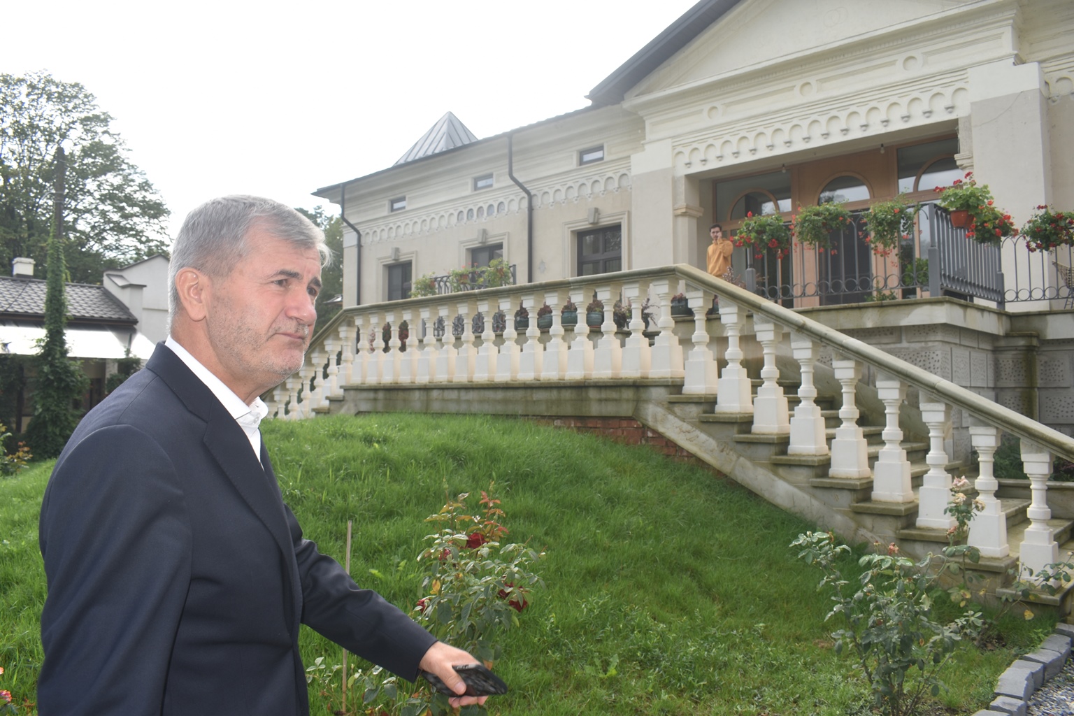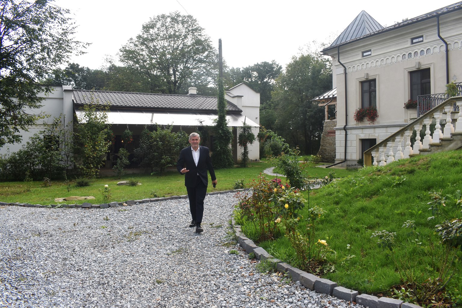 - Eu vă aștept aici, îmi place să stau în zona asta, la Vârfu Câmpului. Aici a fost Conacul Moruzi pe care eu l-am salvat pur și simplu, nu ca să stau în el. L-am salvat, că altfel se dărâma. Și dacă tot l-am salvat, hai să stau aici.