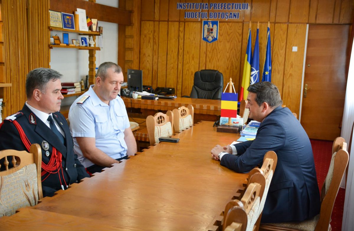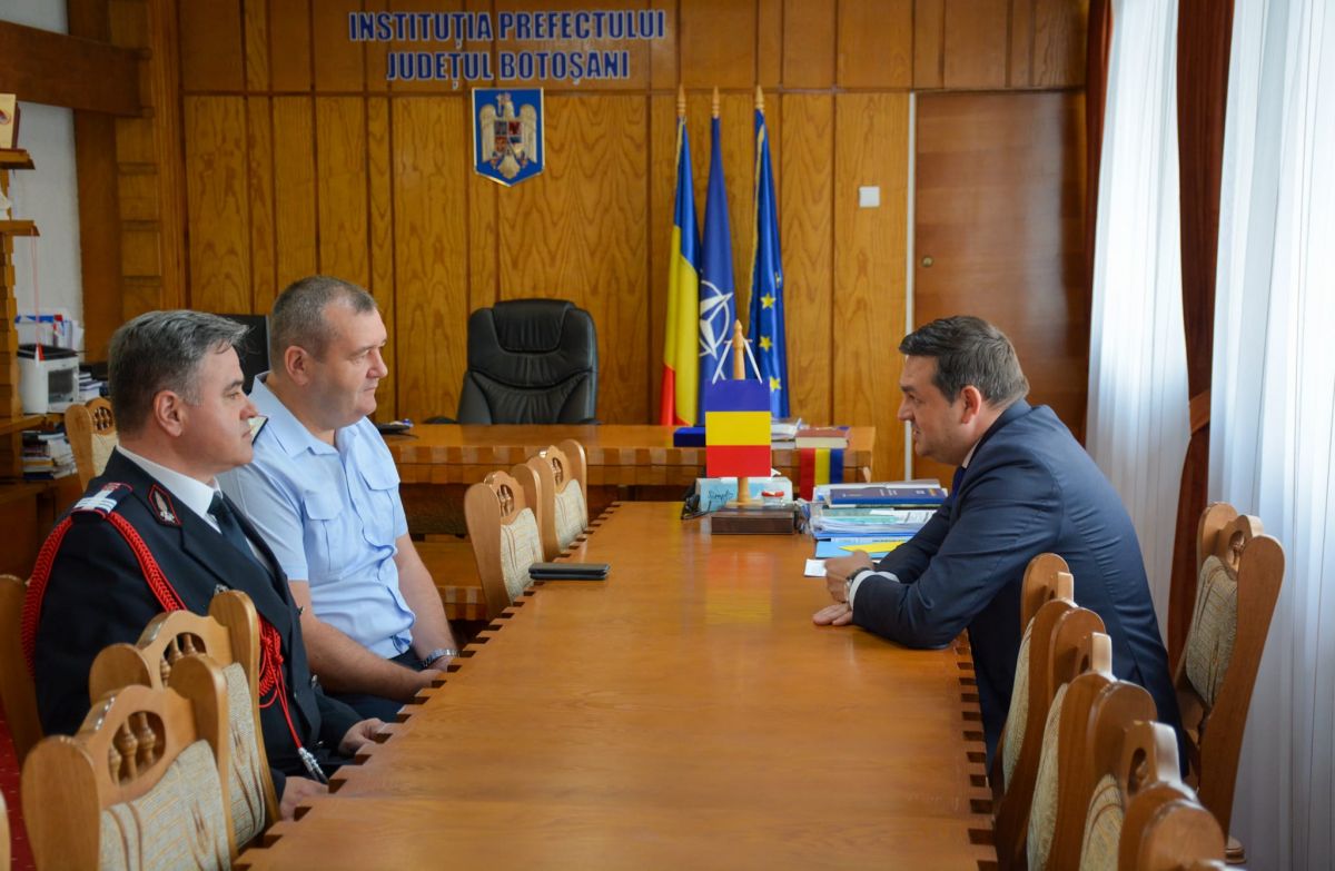 Sorin Cornilă, reprezentantul Guvernului în teritoriu, s-a întâlnit în această dimineață cu generalul maior Benone – Gabriel Duduc, adjunct al Inspectorului General al Inspectoratului General pentru Situații de Urgență (IGSU) și colonelul Decebal Muraru, Inspector Șef al Inspectoratului pentru Situații de Urgență ”Nicolae Iorga” al județului Botoșani.