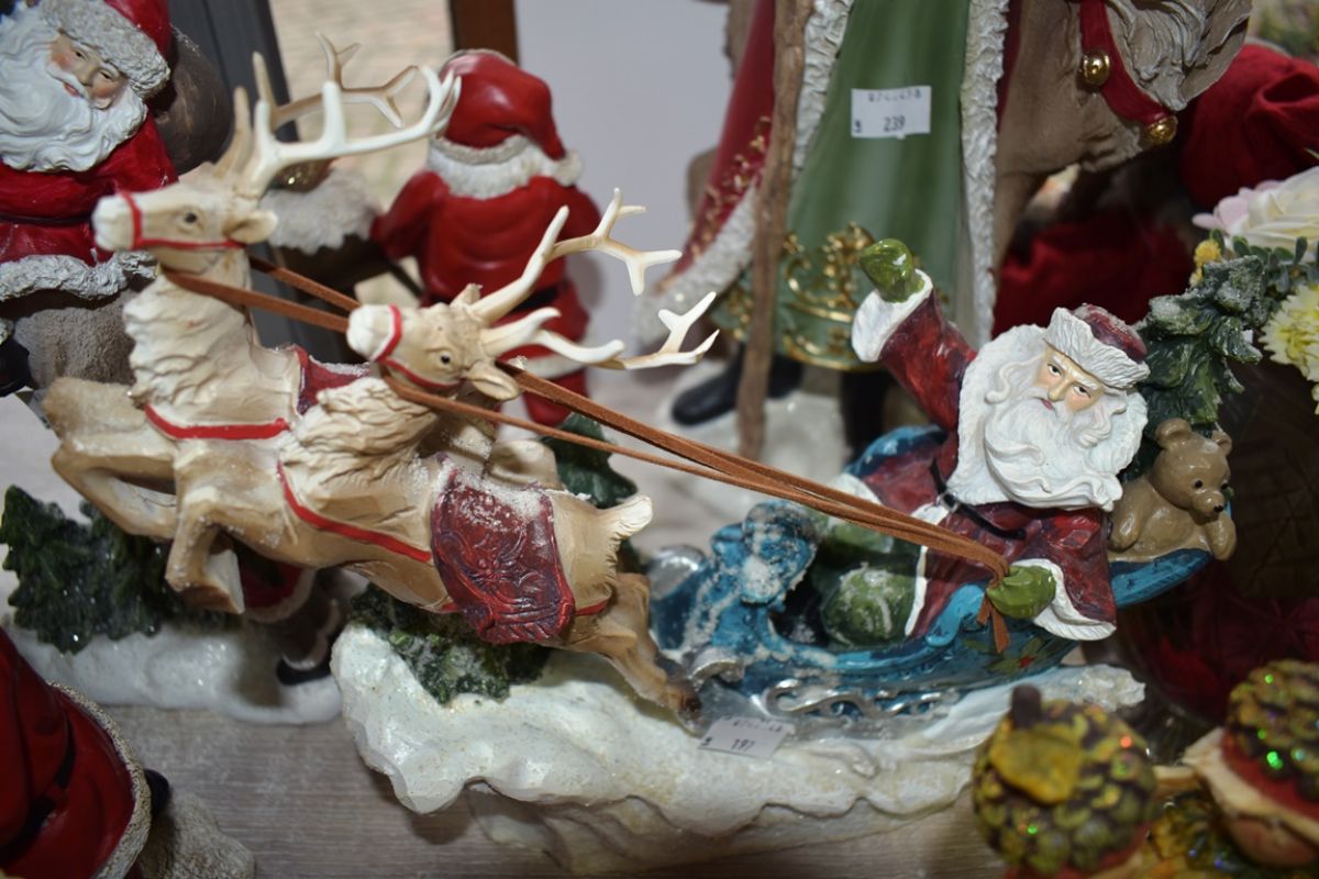 Este o lume de poveste din care poți să duci câteva fragmente și acasă. Un spărgător de nuci, câțiva îngerași ori spiriduși. Cu toții vegheați bineînțeles de Moș Crăciun în tot felul de variante: mai mic, mai mare, mai zâmbitor, mai serios, în mantie roșie sau într-un alb-gri care amintește de zăpada mult dorită de cei mici. Și pentru că are cale lungă de străbătut, e musai să îl dotați și cu un ren, dintr-o gamă largă existentă în magazin. Cum toate acestea trebuie așezate într-o casă, puteți lua una decorativă din ceramică, deja ninsă, cu brăduți albi în curte.