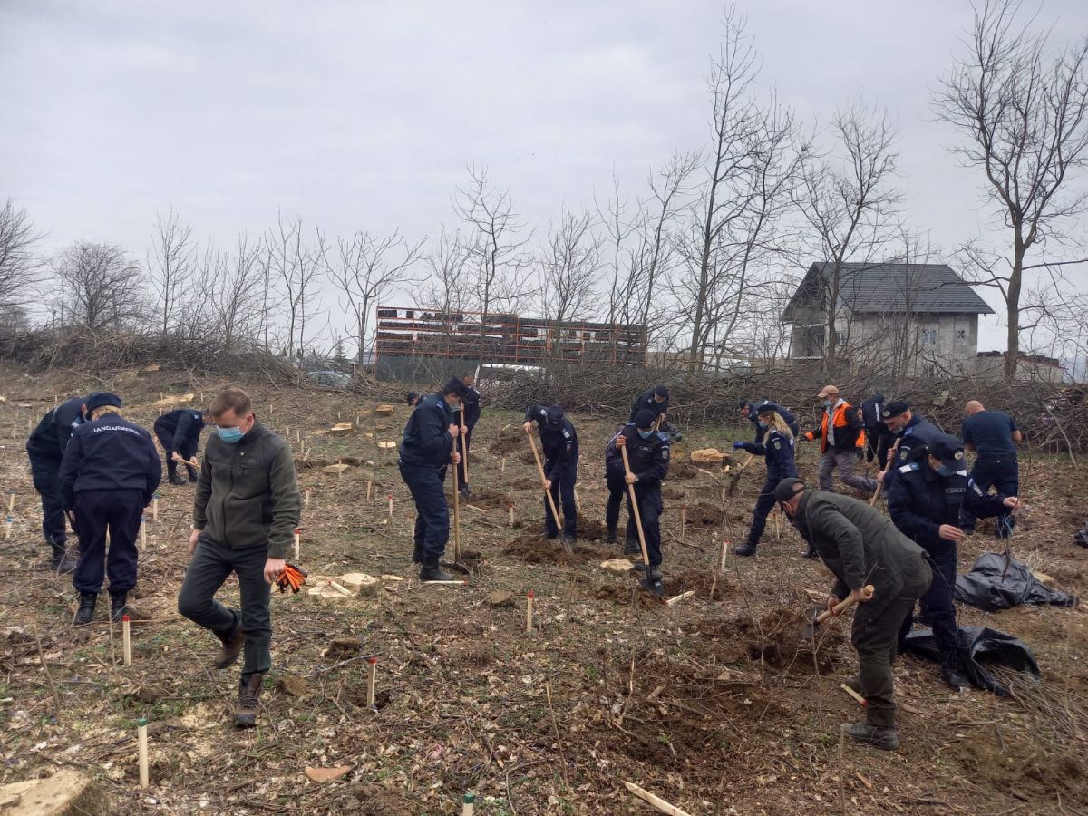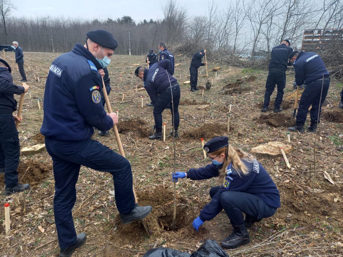 Între două misiuni de asigurare a ordinii publice la proteste, jandarmii botoșăneni și-au făcut timp în această dimineață pentru a planta arbori în cadrul campaniei ”171 de stejari pentru România".
