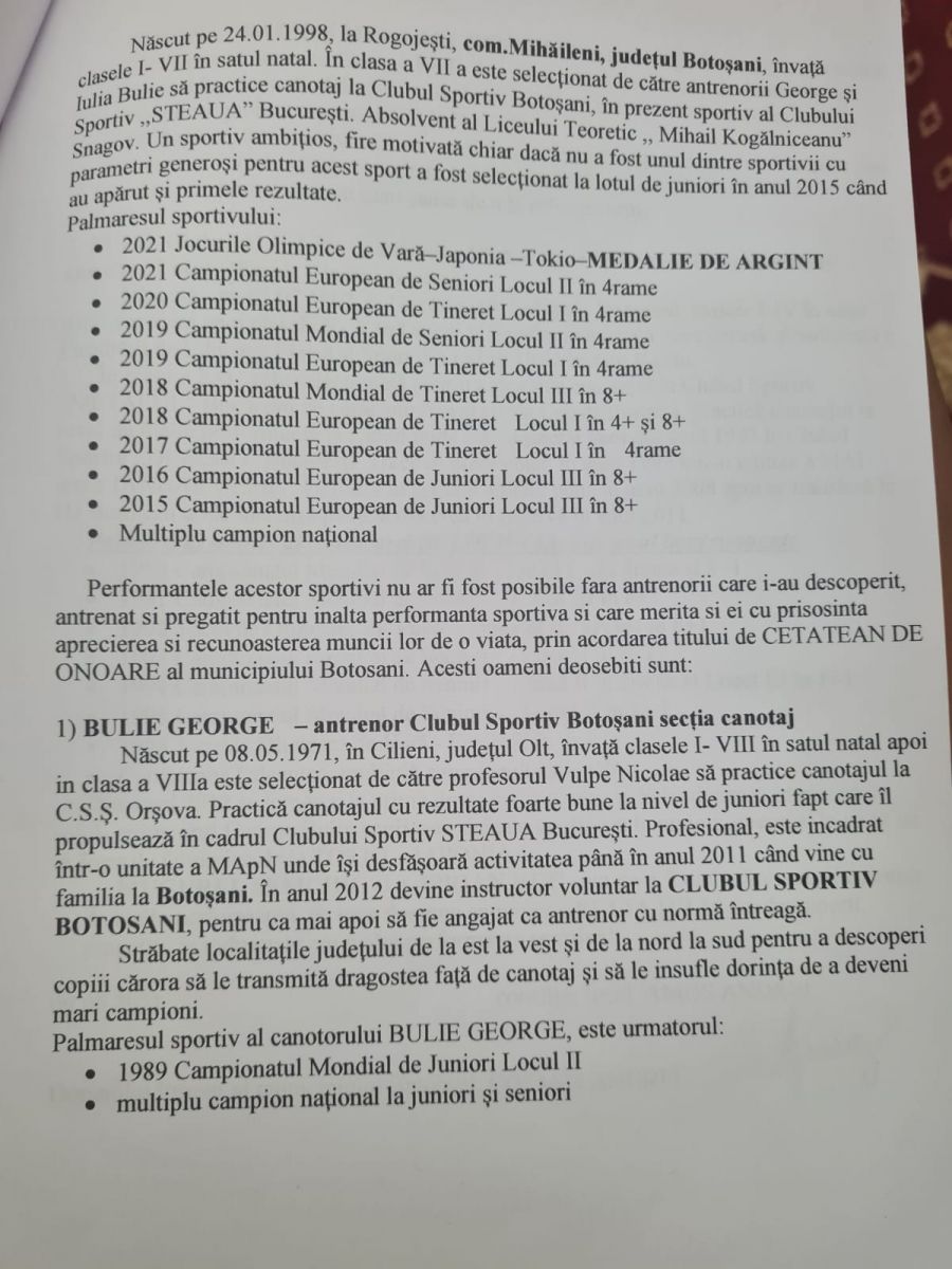 La nota de fundamentare a fost depus și palmaresul celor doi sportivi și care poate fi vizualizat în fotografiile de mai jos