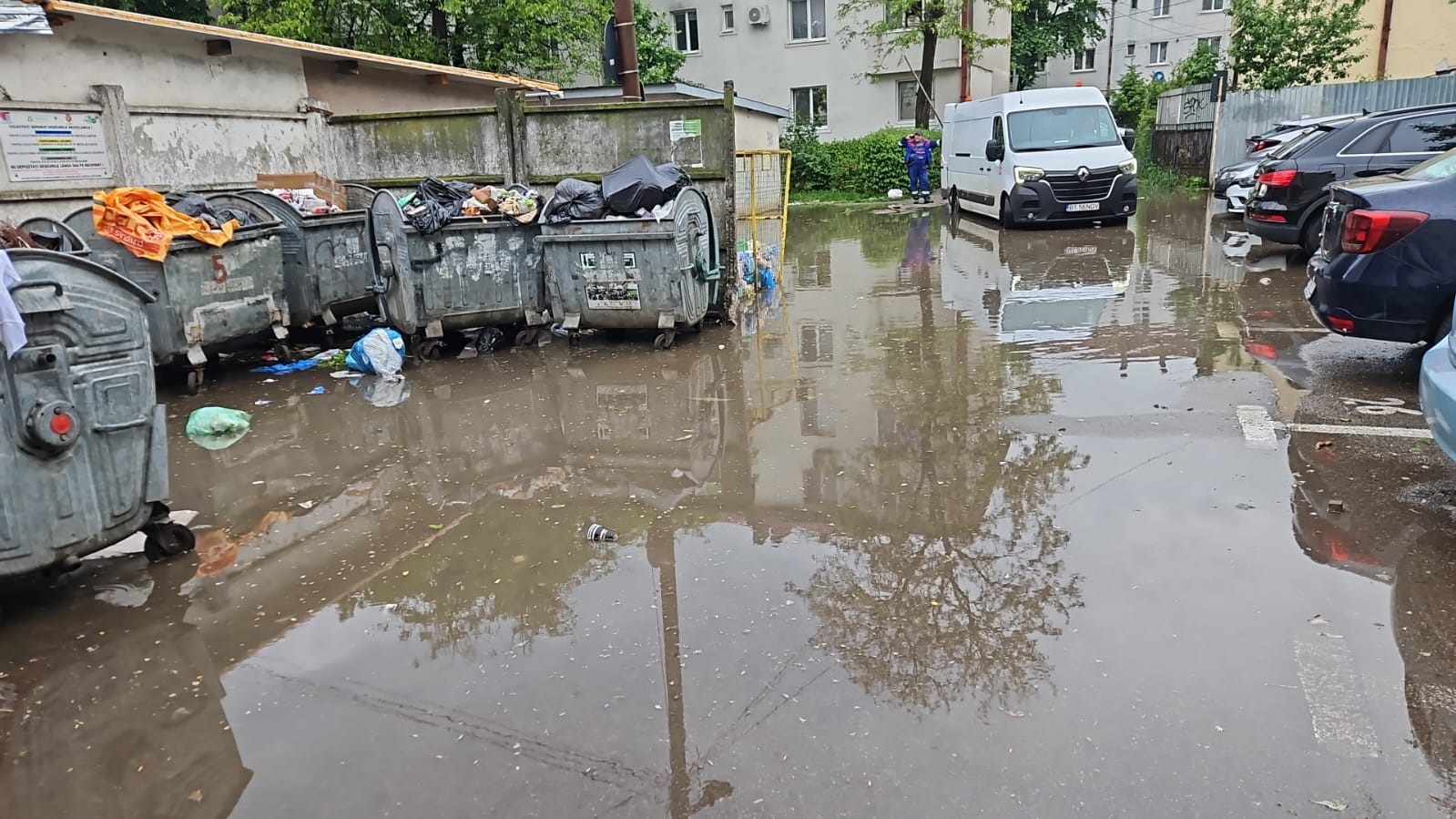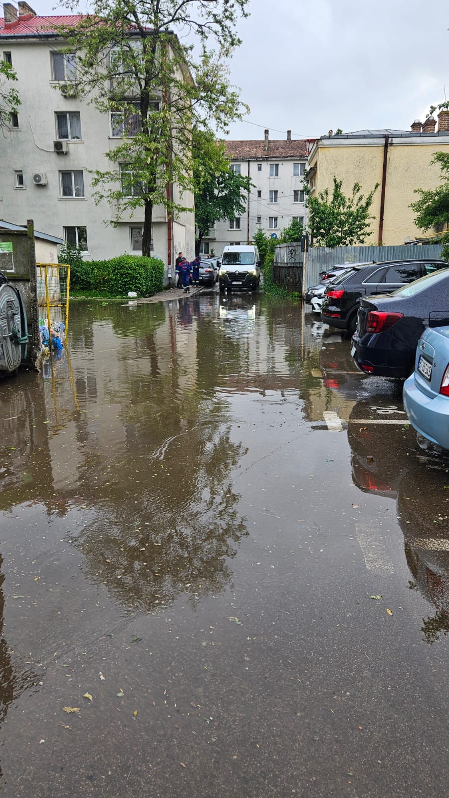În acest cartier gurile de scurgere sunt puține și efectiv nu fac față volumului de apă care a ajuns și la subsolurile blocurilor din apropiere.