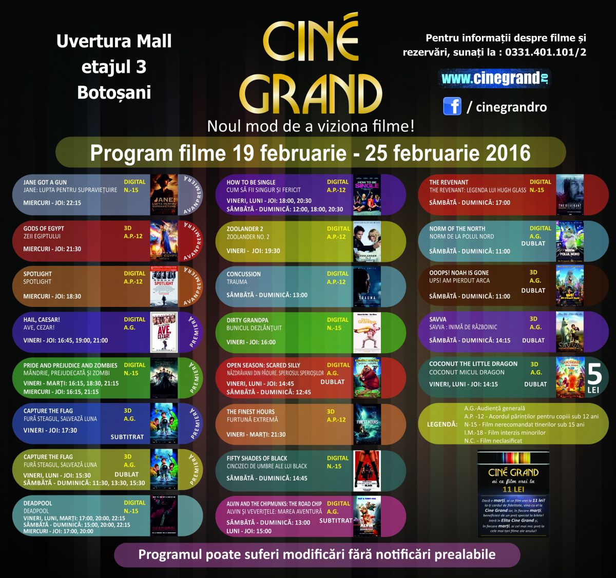 În perioada 19-25 februarie 2016, reprezentanții Cine Grand au pregătit pentru botoșăneni trei filme în avanpremieră pe marile ecrane ale multiplexului din incinta Uvertura Mall.