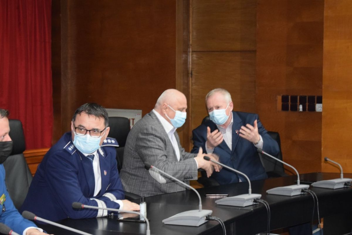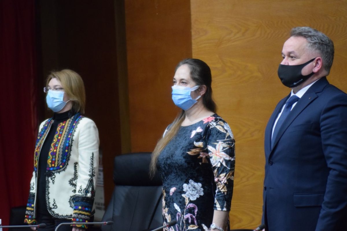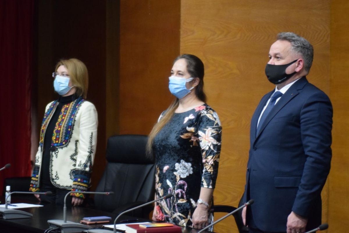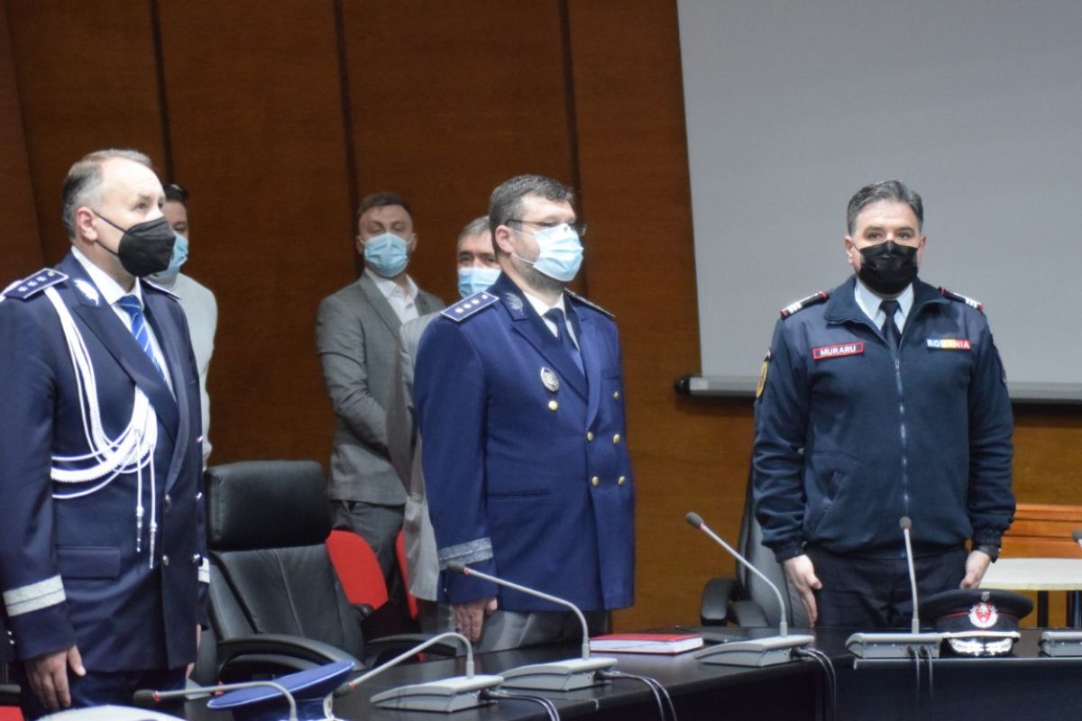 Ceremonia a avut loc în sistem videoconferință, iar de pe micul ecran din sala Palatului Administrativ au transmis mesaje premierul Florin Cîțu, vicepremierii Dan Barna și Kelemen Hunor precum și Lucian Bode, ministrul Afacerilor Interne.