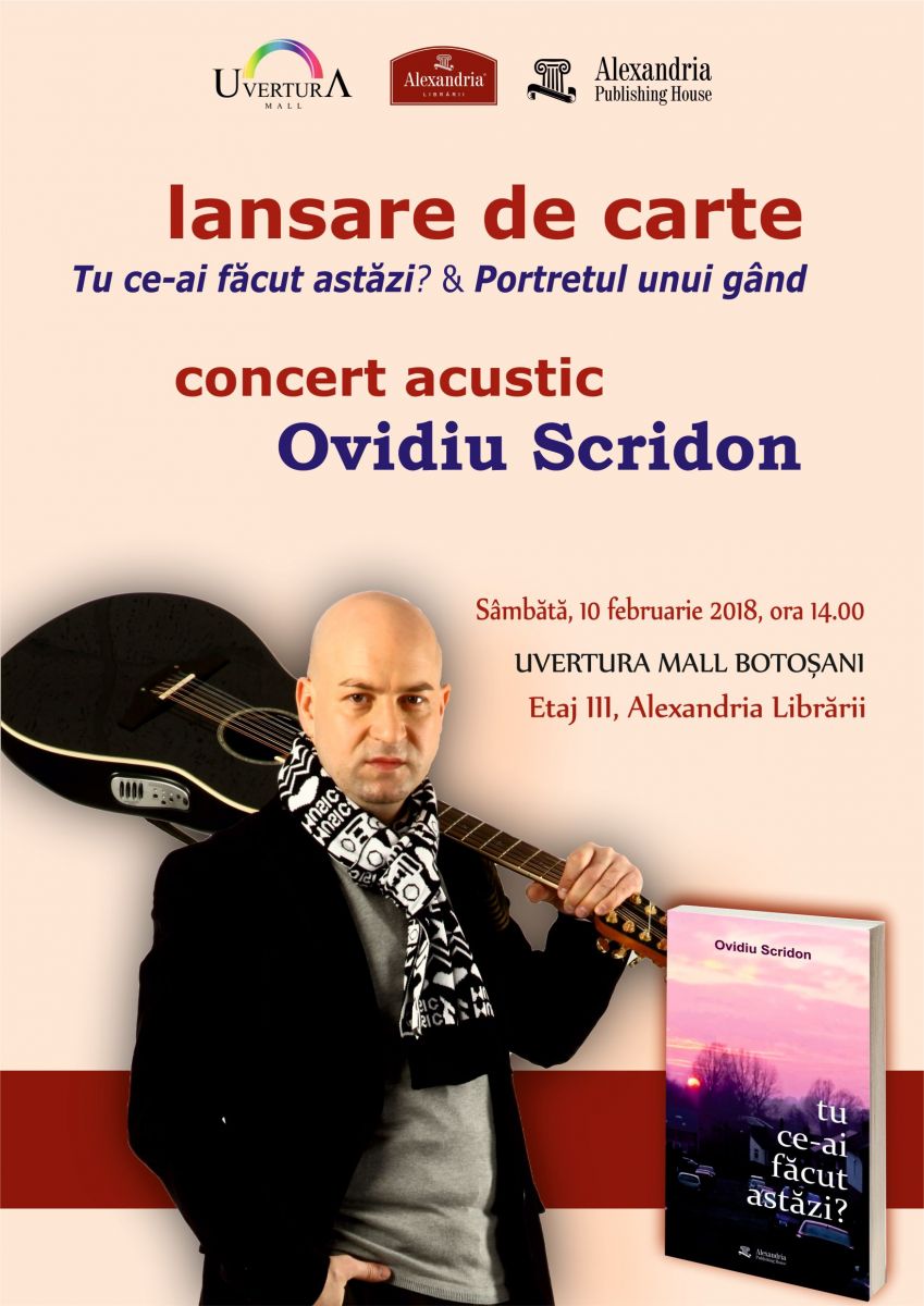Alexandria Librării și Uvertura Mall vă invită să participați la lansarea volumului de poezii „Tu ce-ai făcut astăzi?”, autor Ovidiu Scridon.