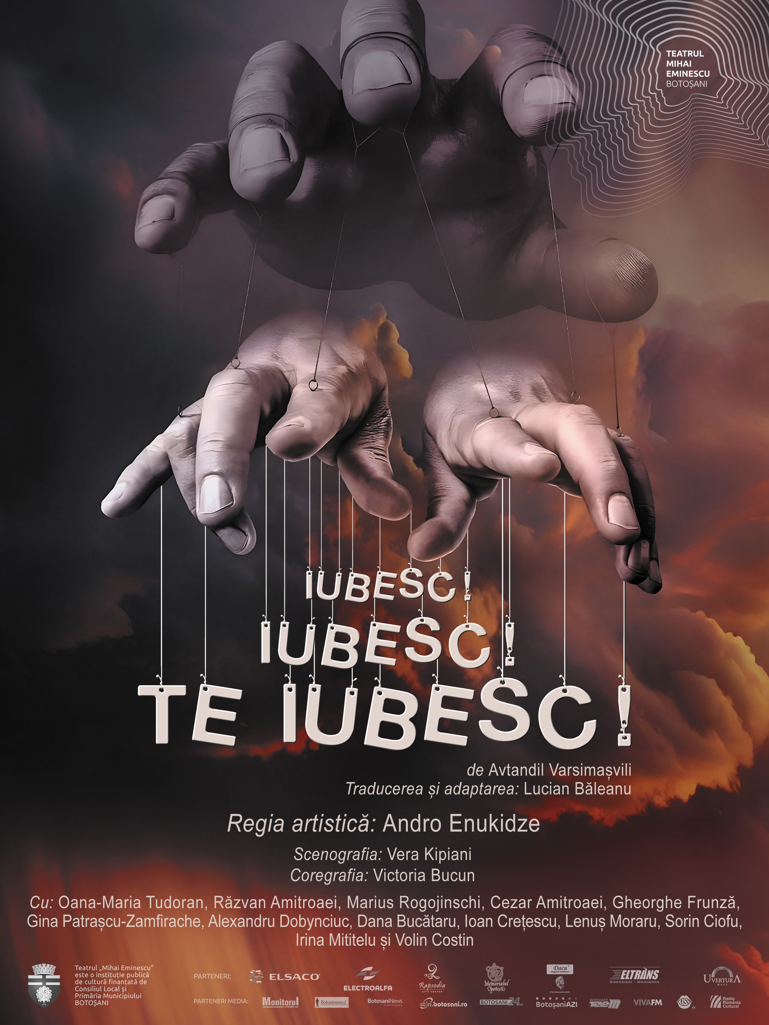 Vă invităm sâmbătă, 11 mai de la ora 18:00, la Casa Tineretului din B-dul Mihai Eminescu nr. 48 la spectacolul „Iubesc! Iubesc! Te iubesc!” de Avtandil Varsimașvili, regizat de regizorul georgian Andro Enukidze. Traducerea și adaptarea piesei a fost facută de Lucian Băleanu, scenografia spectacolului este semnată de Vera Kipiani, iar coregrafia a fost realizată de Victoria Bucun.