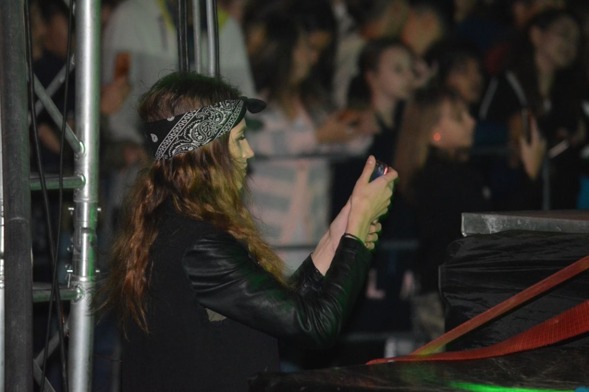 Astfel, timp de aproximativ 40 de minute, cât a durat concertul lui Sanda, botoșăneanca a stat pe lângă un stâlp și a fredonat melodiile cântate de acesta, l-a filmat, l-a fotografiat ori a făcut poze cu fanii, dar a refuzat să urce pe scenă.