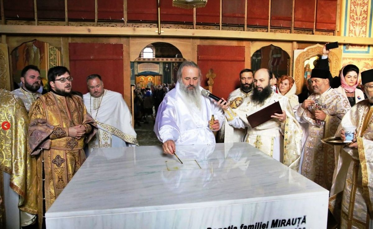 Sute de oameni s-au adunat încă de la primele ore ale dimineții în comuna botoșăneană pentru a participa la slujba de sfințire a sfântului locaș și pentru a se închina, conform tradiției, în Sfântul Altar, scrie Doxologia.ro. După ce credincioșii și oficialitățile prezente l-au întâmpinat pe ierarh, soborul a înconjurat biserica parohială, s-au citit câteva pasaje scripturistice, iar Părintele Mitropolit a uns în semnul Sfintei Cruci zidurile exterioare cu Sfântul și Marele Mir. În continuare, clericii s-au îndreptat spre altarul locașului de rugăciune pentru a participa la sfințirea și pecetluirea Sfintei Mese.