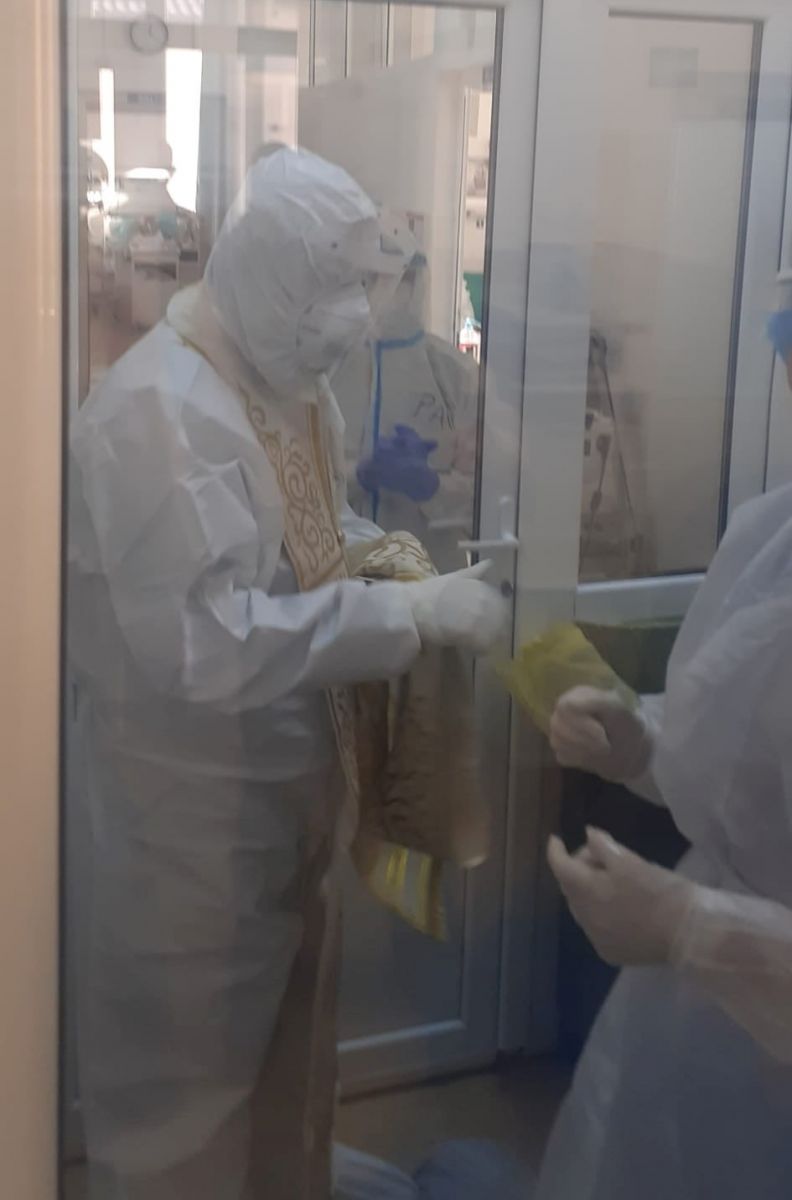 Ierarhul a îmbrăcat un combinezon și a mers la Secția de Terapie Intensivă pentru a binecuvânta și încuraja pacienții.